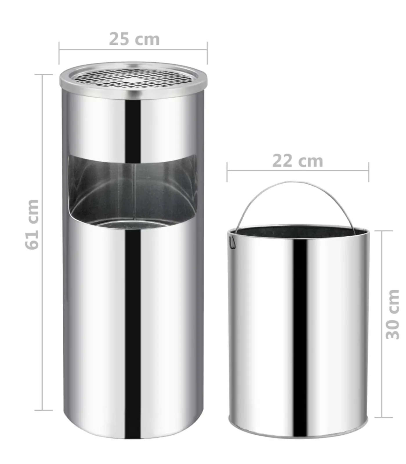Onze hoogwaardige asbak/prullenbak wordt gekenmerkt door de elegantie van roestvrij staal en een asbakontwerp. Hij heeft niet alleen een geavanceerd ontwerp, maar is ook zeer functioneel. Onze afvalcontainer heeft een grote afvalbak met daarboven een asbak. Hij kan zowel binnen als buiten worden gebruikt en is dus ideaal voor hotels, restaurants, kantoren, enz.