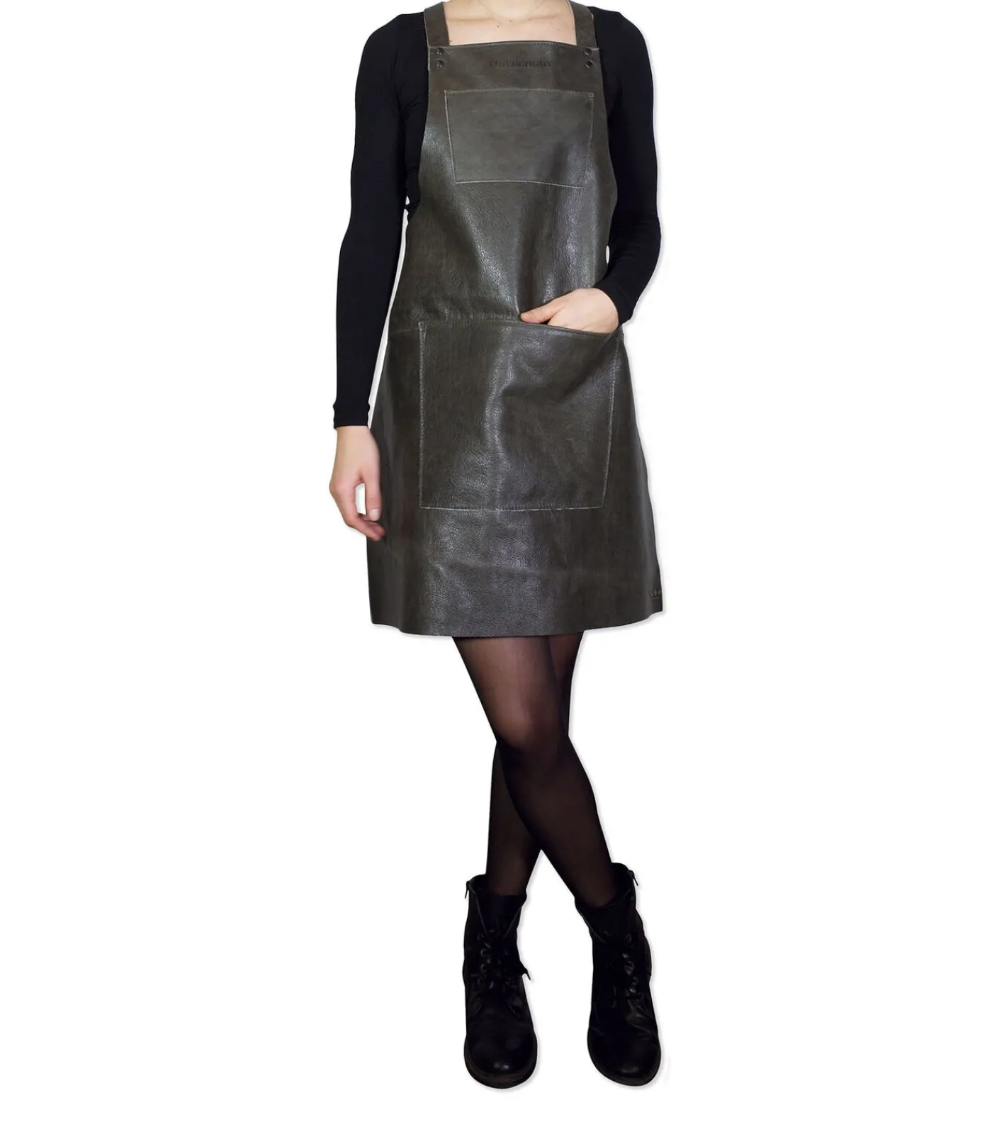 BBQ Lederen schort met bretellen – Grijs Keuken- & Tafellinnen