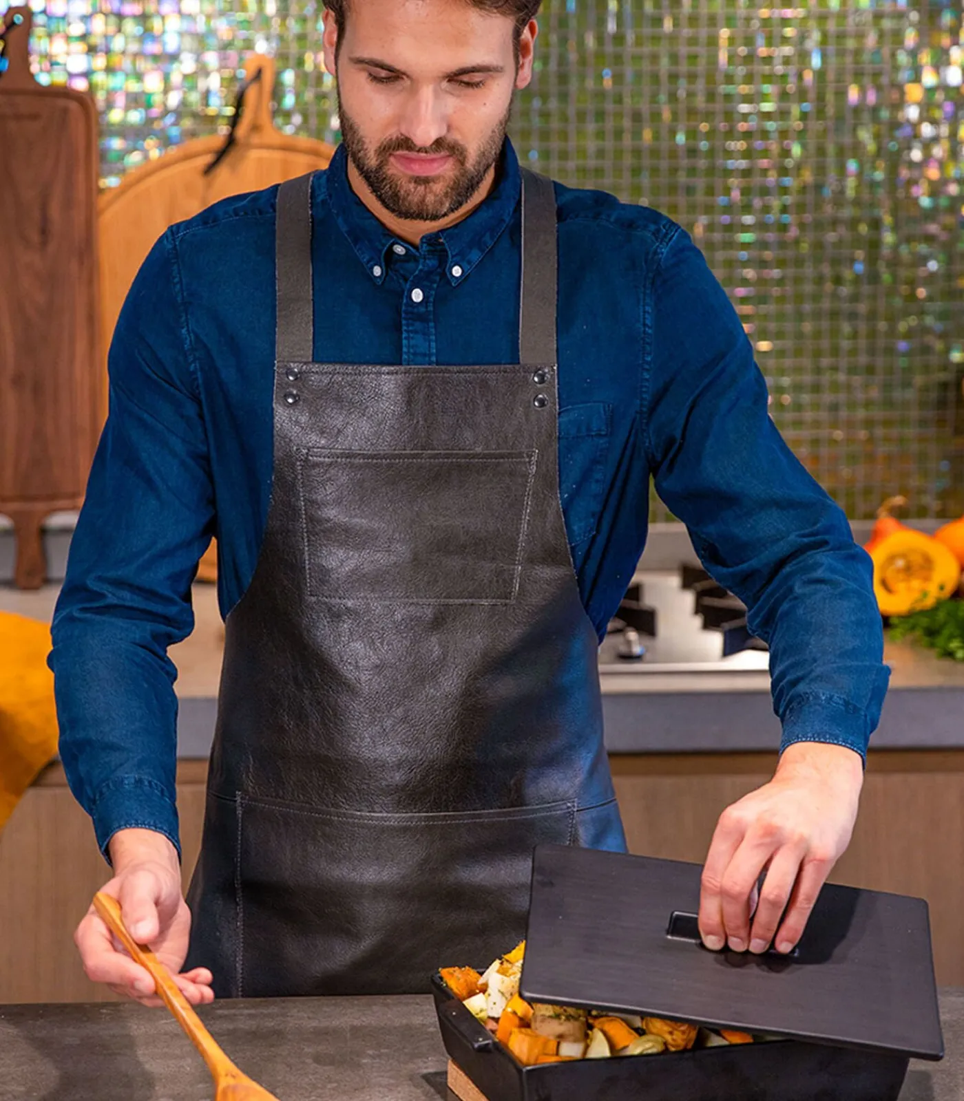 De Dutchdeluxes lederen schort met bretellen in de kleur grijs is handgemaakt in Nederland van 100% volnerfleer, een natuurlijk product dat ouder wordt. Regelmatig gebruik en het verstrijken van tijd zal een mooie patina opleveren, een zacht laagje op de oppervlakte van het leer. Dit product wordt dus nog mooier door het te gebruiken! Zit erg comfortabel dankzij de verstelbare bretels op de rug. Voor gebruik in de keuken of aan de barbecue in de tuin. .Uitstekende bescherming Het Dutchdeluxes schort biedt uitstekende bescherming tijdens het koken en barbecueën. Het stevige volnerfleer beschermt je tegen hitte en spatten, terwijl de verstelbare bretels zorgen voor een comfortabele pasvorm. .Uniek en handgemaakt Dit schort combineert duurzaamheid en stijl, ideaal voor zowel thuisgebruik als professioneel gebruik in de horeca. Het handgemaakte leer wordt mooier met de tijd en gebruik, waardoor je een uniek en persoonlijk item krijgt. De verstelbare bretels maken het geschikt voor iedereen, ongeacht lichaamsbouw. .Kies voor het Dutchdeluxes lederen schort Handgemaakt van 100% volnerfleer Verstelbare bretels voor ultiem comfort Ontwikkelt een mooie patina na verloop van tijd Geschikt voor gebruik in de keuken en bij de barbecue Stijlvol en functioneel ontwerp .Onderhoud en advies Dit leren schort is eenvoudig te onderhouden. Maak het leer schoon met een vochtige doek en vermijd het gebruik van agressieve schoonmaakmiddelen. Om de kwaliteit van het leer te behouden, kun je het schort af en toe behandelen met een leerconditioner. Vermijd langdurige blootstelling aan extreem hoge temperaturen om de levensduur van het schort te verlengen.