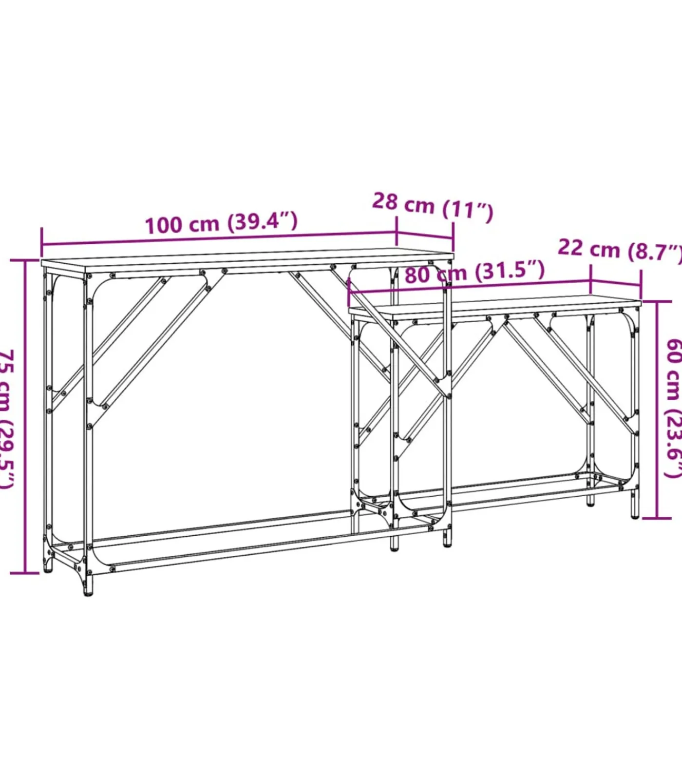 Afmetingen wandtafel (S): 80 x 22 x 60 cm (B x D x H)