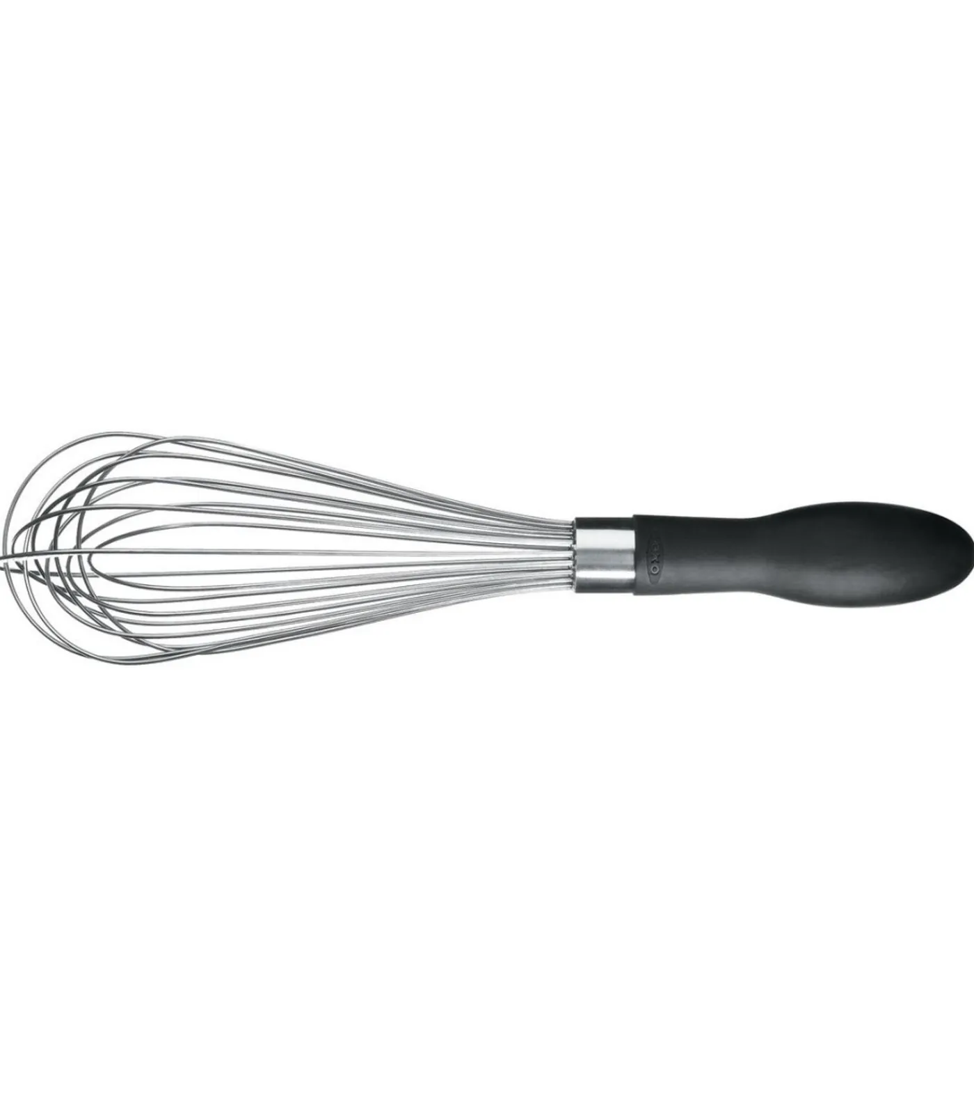 Deze OXO garde breed van de Good Grips collectie heeft, zoals de naam al zegt, een stevige, goede handgreep die gemaakt is van santoprene, een zacht kunststof wat antislip is en de druk absorbeert en uw hand minder vermoeid raakt. Hierdoor is de garde makkelijk in gebruik en maakt u in een handomdraai (of meerdere) de lekkerste pannenkoeken, slagroom, sauzen of roereieren. Bestel uw OXO garde breed bij Cookinglife!