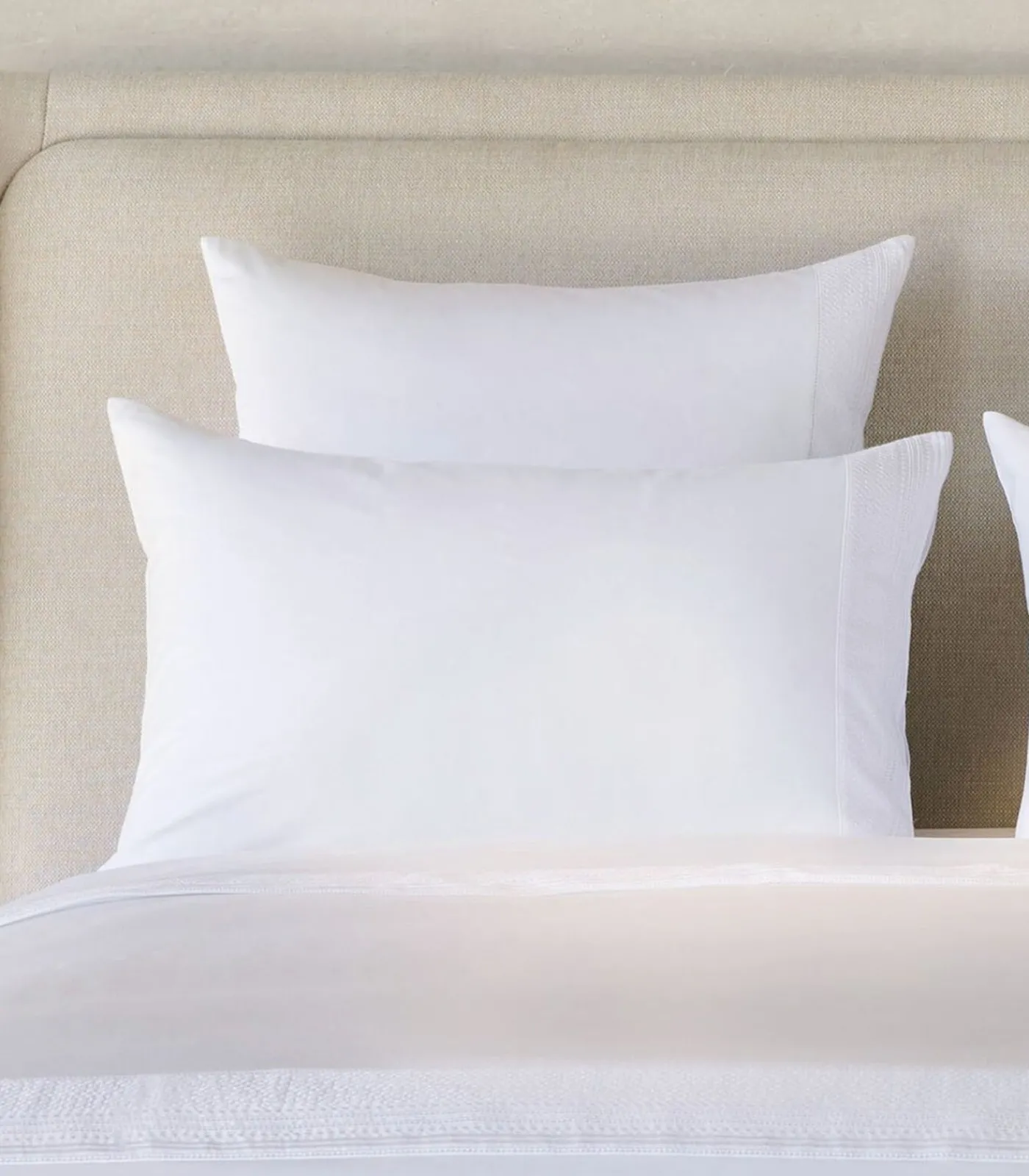 Voorkant effen wit met een ingevoegde geborduurde verticale bandAchterkant effen wit