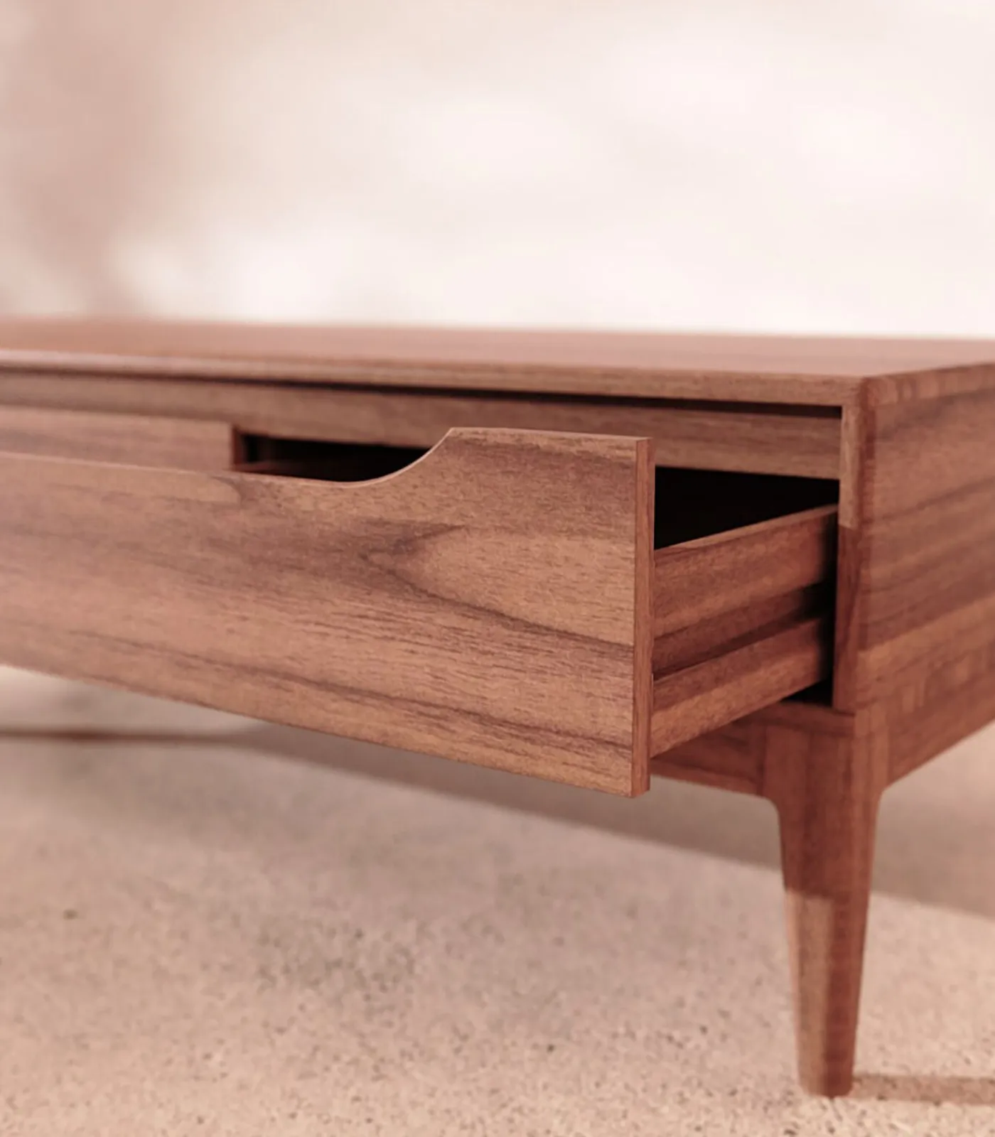 * 3 lades (H 9 x B 40,8 x D 42 cm – houten rail), hoogte van de poten: 21,5 cm
