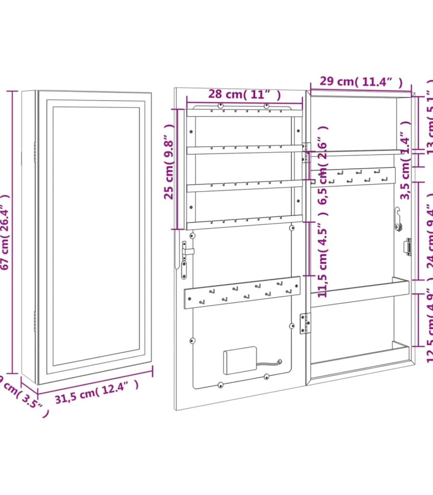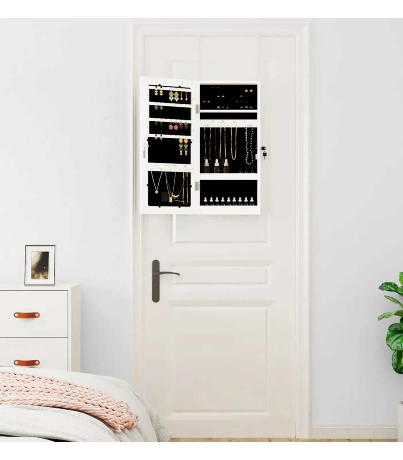 Voldoende opbergruimte: de spiegel met opbergruimte heeft veel haakjes, hangers en plankjes om je sieraden netjes geordend en binnen handbereik te houden.