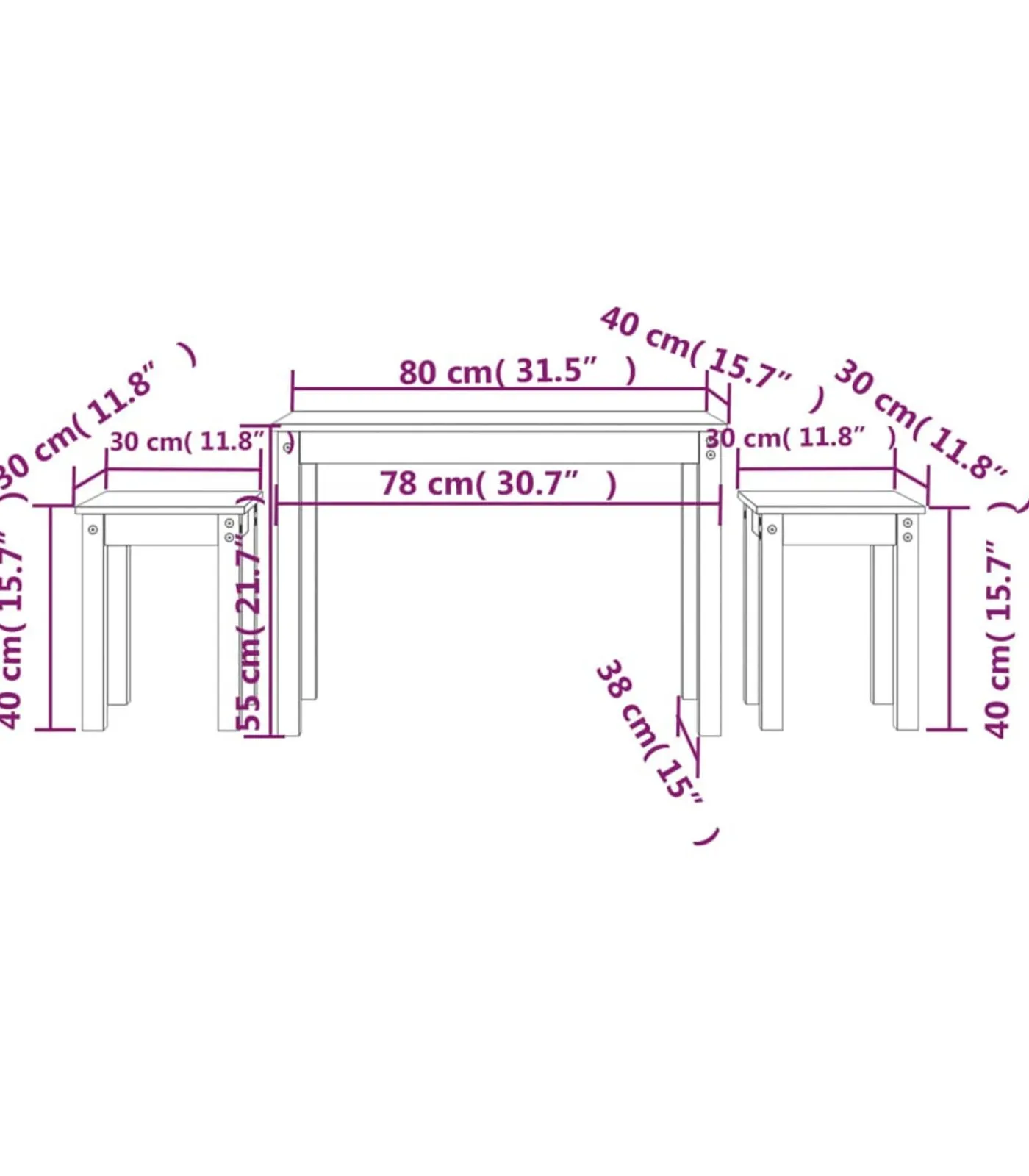 Afmetingen grote tafel: 80 x 40 x 55 cm (L x B x H)