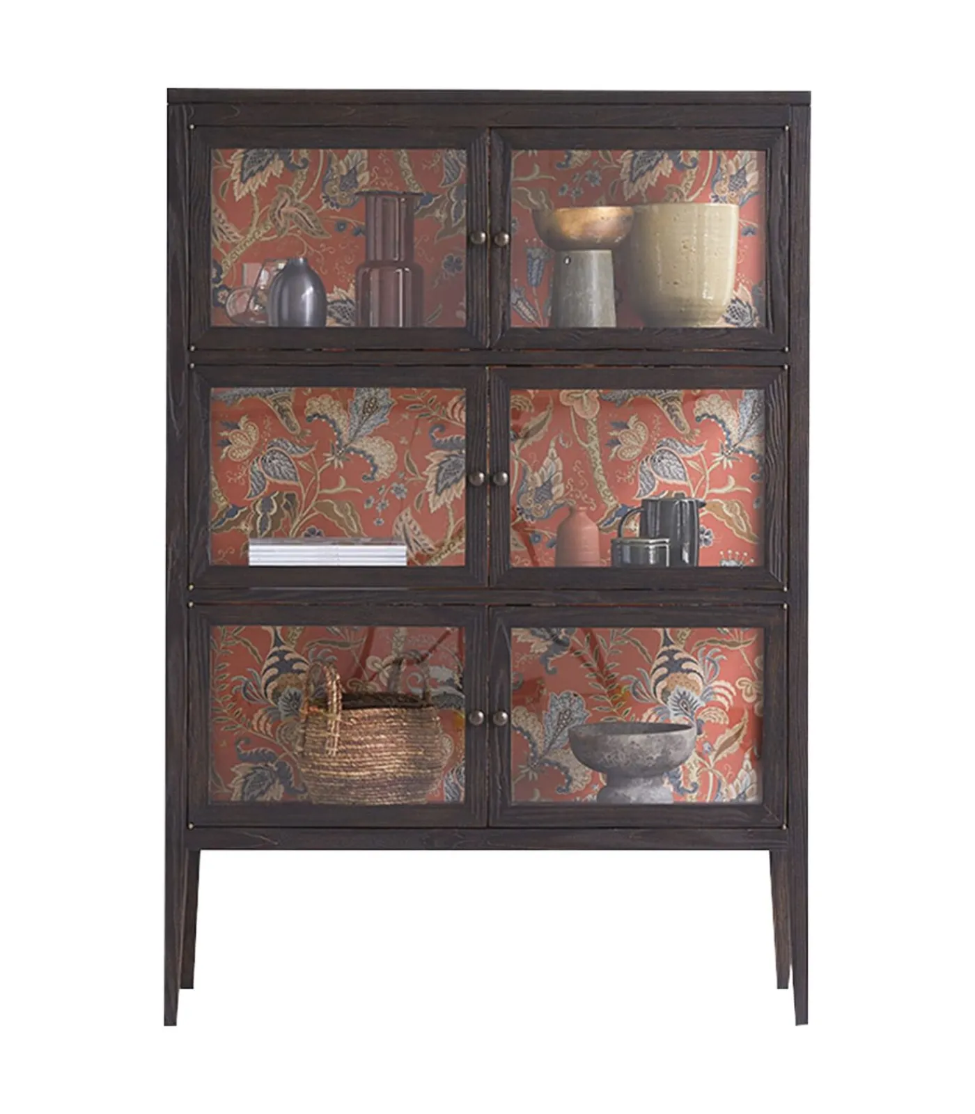 Een meubel als een uitnodiging tot reizen, exotisch en artistiek tegelijk: de iepenhouten vitrinekast Tana heeft vele verleidelijke troeven: een achterwand bekleed met mooi behang, strakke lijnen en een frame van hout. Met zijn elegante en unieke ontwerp kan het in elke kamer van het huis staan om uw mooiste decoratieve voorwerpen te laten zien, of het kan worden gebruikt als boekenkast.De iepenhouten vitrinekast Tana is onderdeel van onze neo–etnische collectie, een reeks meubels ontworpen om u te laten reizen zonder uw huis te verlaten.