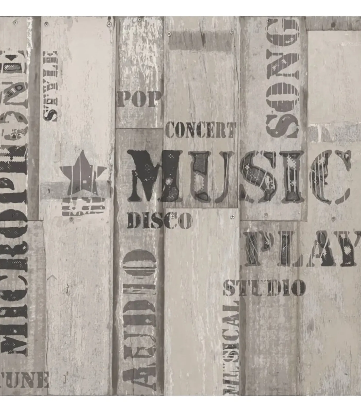 Het vliesbehang is zeer duurzaam en scheurbestendig. Met zijn tijdloze ontwerp van houten planken en woorden is het behang een fantastische toevoeging aan je interieur.
