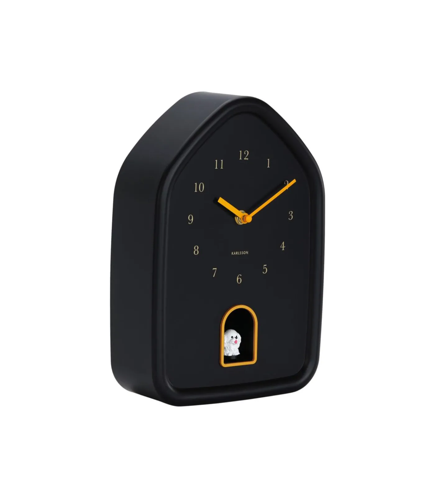 Een modern vormgegeven klok met een verrassend detail: elk heel uur laat een klein brutaal hondje zich even zien & horen. Het strakke silhouet en de subtiele gouden accenten maken dit ontwerp een stijlvolle toevoeging aan elke ruimte. Met zijn zachte vormen en warme uitstraling past de klok perfect binnen het Natural Glow thema. Een speels design met karakter, dat zorgt voor een glimlach, elke keer als de hond blaft.