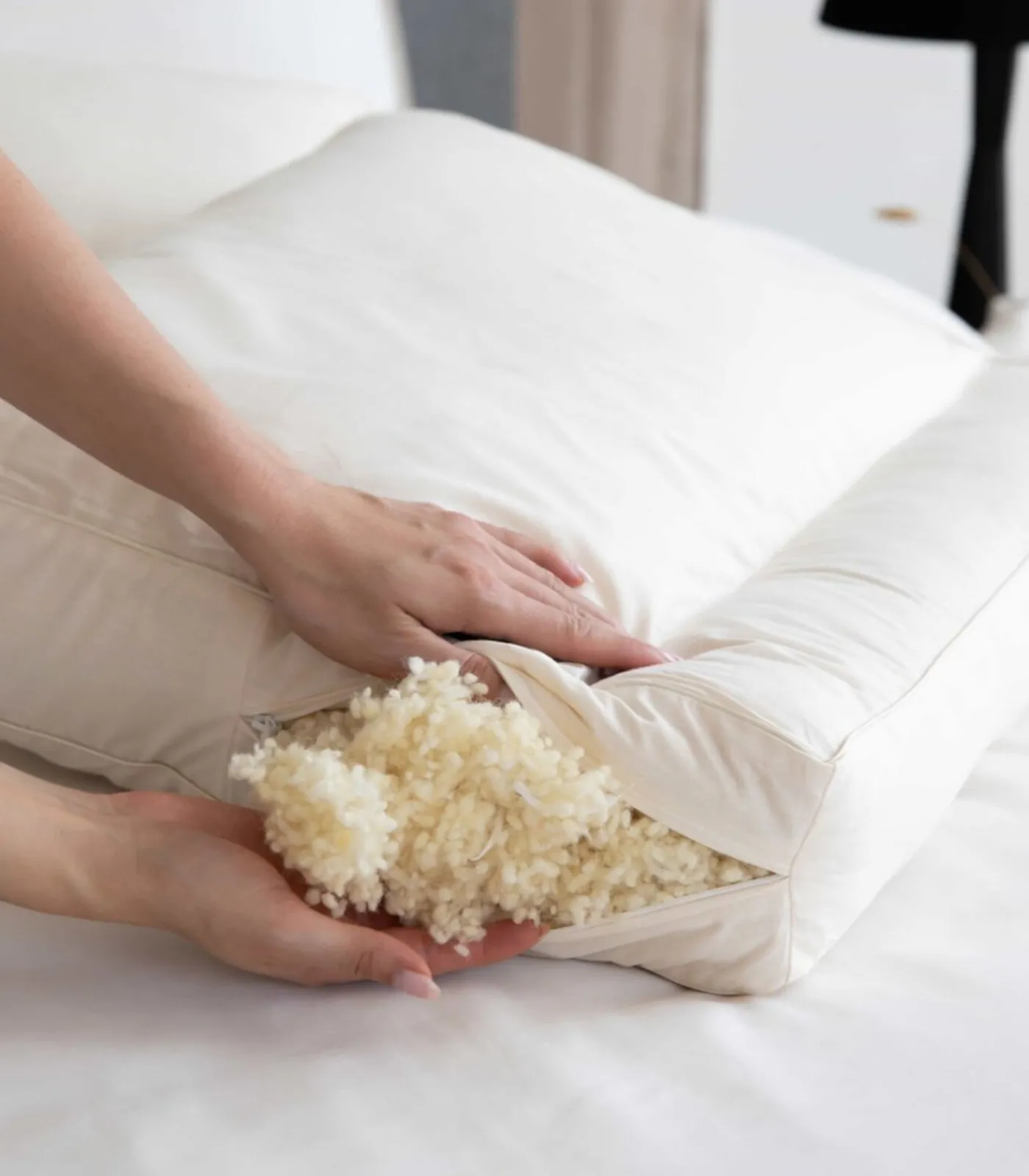 Vulling: 100% zuiver scheerwol in fijn modelleerbare bolletjesvorm.