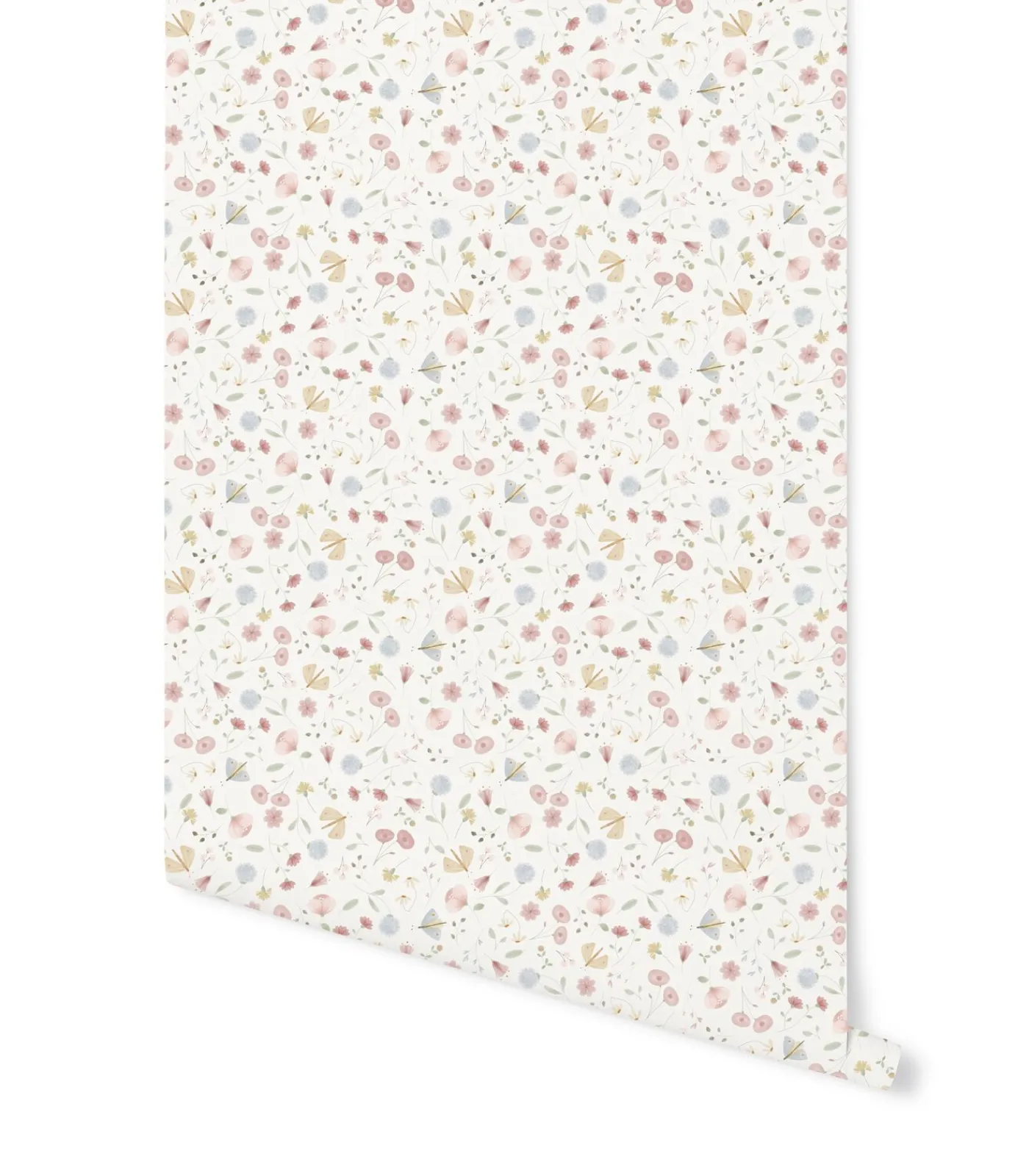 Dit schattige behang uit de Flowers & Butterflies collectie tovert de kamer om tot een dromerige tuindecor. De neutrale ondergrond is versierd met bloemen in de warme tijdloze tinten roze, oker, olijf en lichtblauw. De vele vlinders zorgen ervoor dat de bloemen blijven bloeien en geven een extra liefdevol tintje aan het behang. Een prachtige sfeer voor je kleintje om in weg te dromen.