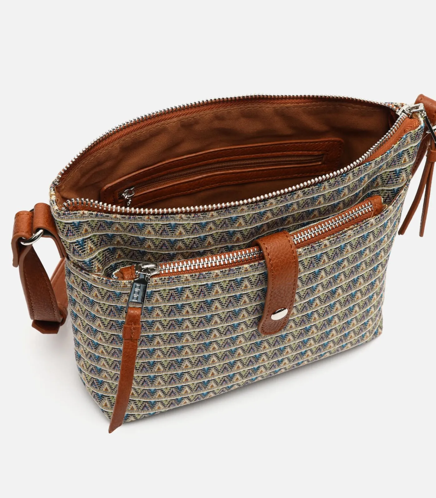 Kusi bolso bandolera pequeño con estampado jacquard y neceser pequeño de Misako