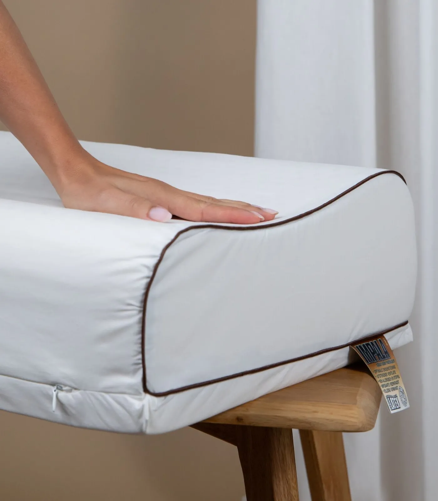 Het luxe impale contour hoofdkussen is voorzien van twee hoogte zijden. 1 zijde van 12cm hoog én een zijde van 14cm hoog. Gemaakt in een natuurlijke en ergonomische vorm voor optimale begeleiding van hoofd en nek.