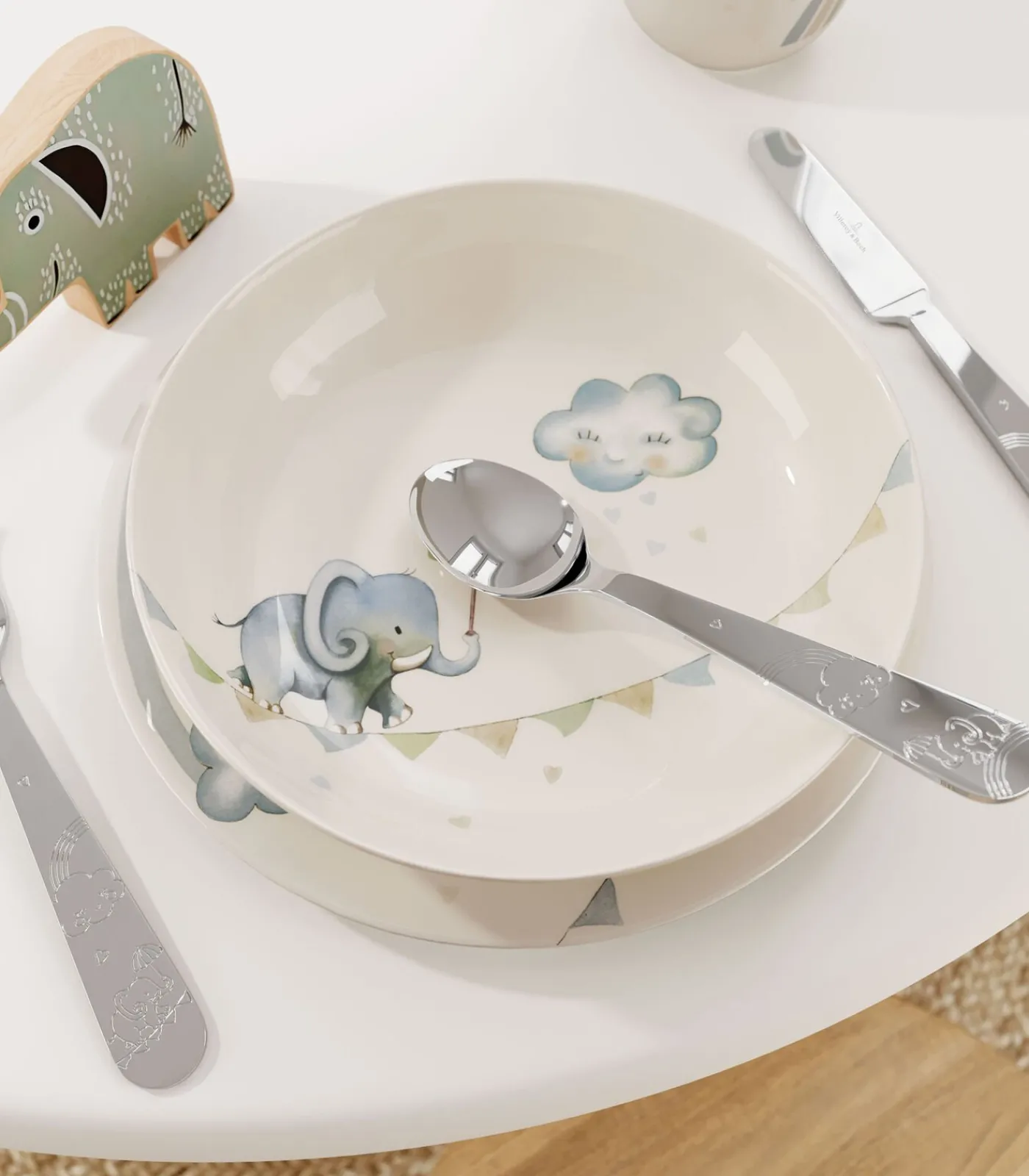 Le damos la bienvenida al universo de estilo boho para público infantil de Villeroy & Boch Toda la gama de productos está específicamente adaptada a las necesidades de los más pequeños – Tamaño óptimo y fácil de manejar. La vajilla, compuesta por platos, tazas y cuencos, inspira con diseños adaptados para niños y convierte cada comida en una experiencia divertida. La colección Boho Kids es un regalo perfecto para diversas ocasiones, como cumpleaños, bautizos o fiestas como Navidad y Semana Santa. Un simpático elefante y su amigo perezoso adornan la decoración “Walk like an elephant”. La cubertería infantil de acero inoxidable destaca con elementos decorativos en relieve. Está óptimamente diseñado para las manos de los niños pequeños, ofreciendo comodidad y seguridad. Naturalmente, libre de sustancias nocivas y apto para lavavajillas. Descubra ahora el desenfadado catálogo infantil de Villeroy & Boch en moderno diseño “Boho”. Naturalmente, libre de sustancias nocivas y apto para lavavajillas.