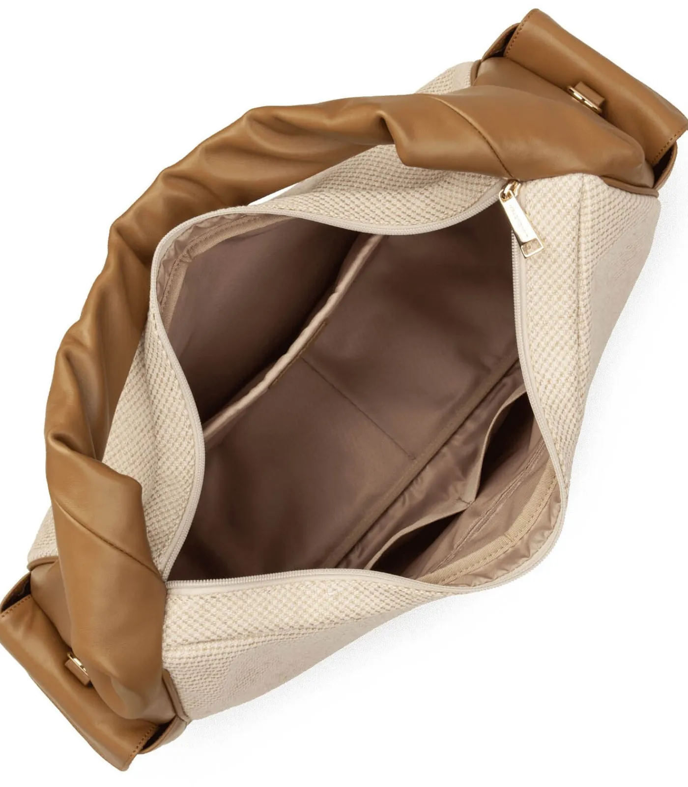 Deze nieuwe Julia x Lancaster handtas is gemaakt van katoen. Hij heeft een buitenvak met rits, een enkel binnenvak, een binnenvak voor je telefoon en een binnenvak met rits. Deze tas is perfect voor op reis en combineert functionaliteit en elegantie met een tijdloos ontwerp. Hij kan op de schouder of kruislings gedragen worden.