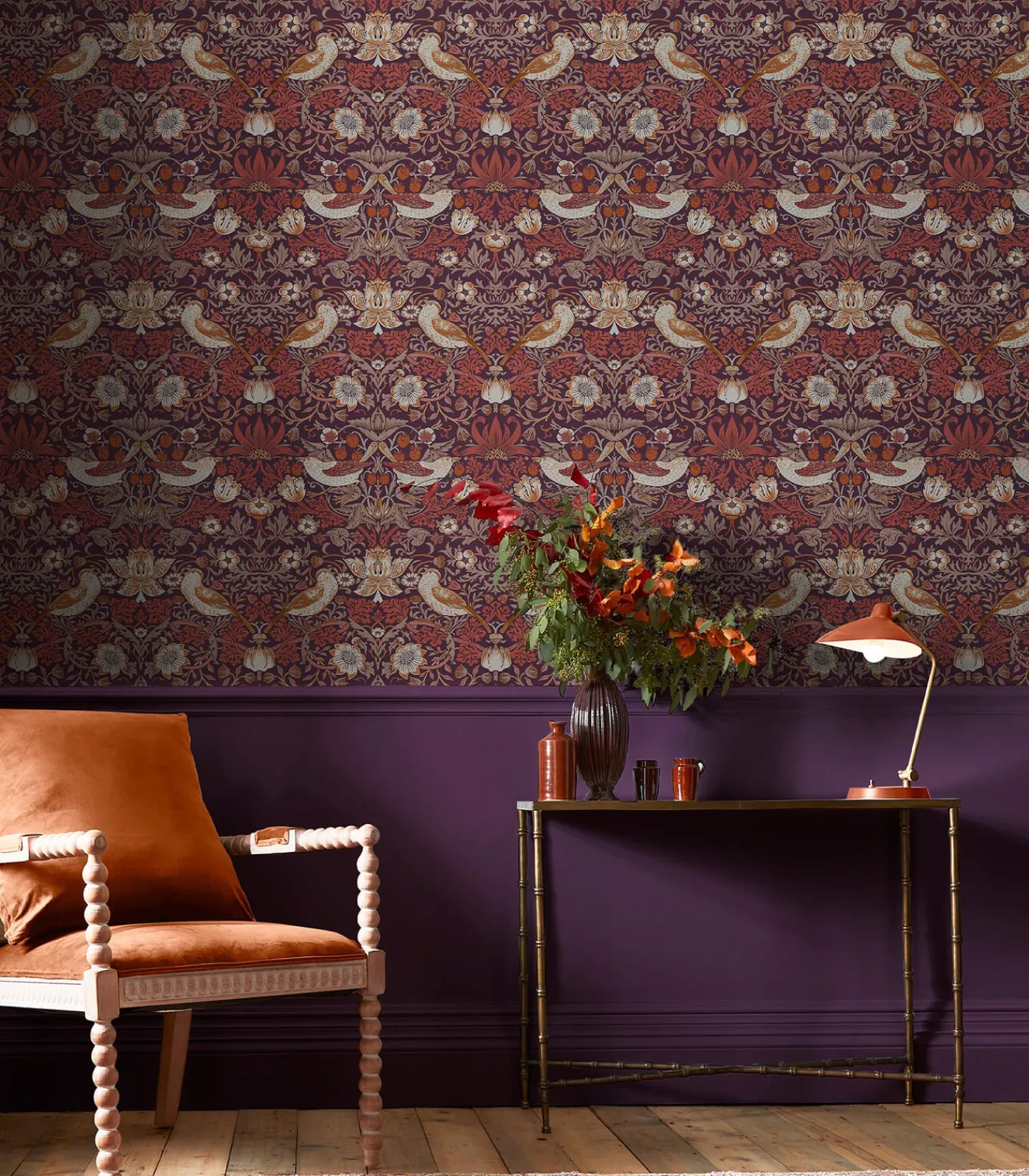 Clearance Vliesbehang Strawberry Thief Plum Wanddecoratie