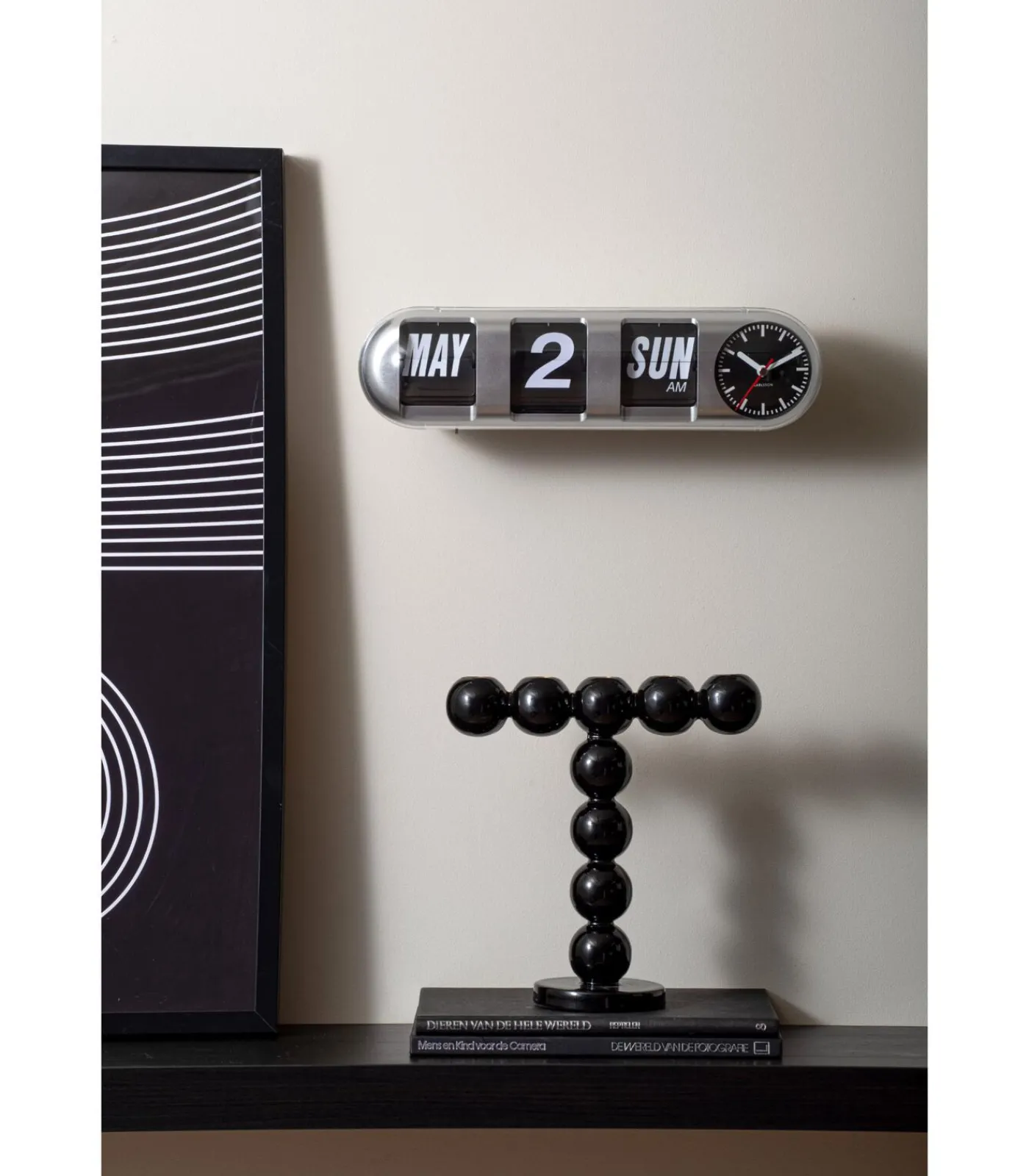 De Tube Flip klok is een slanke en elegante flipklok die zowel als wandklok en als tafelklok gebruikt kan worden. Met zijn analoge tijdweergave en datum flip combineert hij retro charme met een strak, modern design. Een functioneel en stijlvol statement voor ieder interieur!