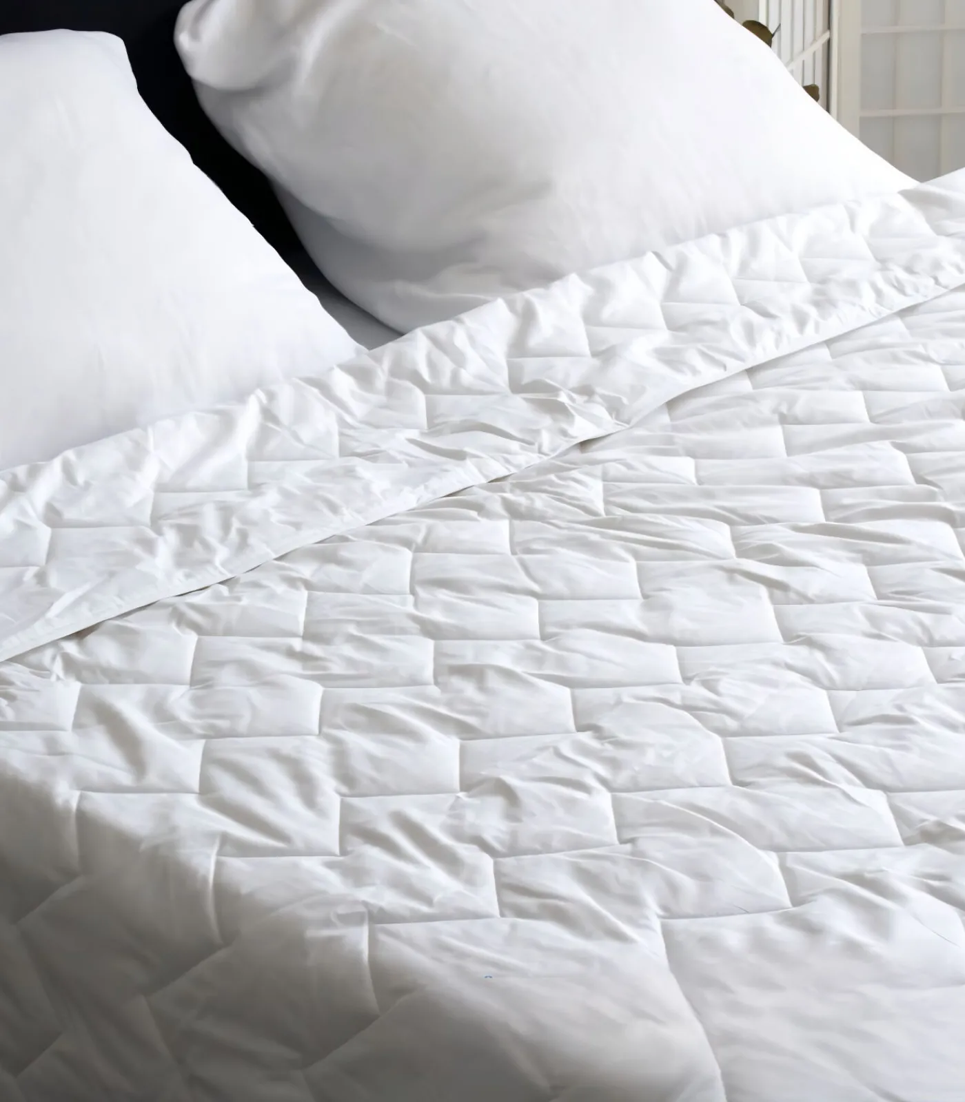 SummerSilk is bekleed met een extra koele, natuurlijke tijkstof van 100% Percal–katoen.