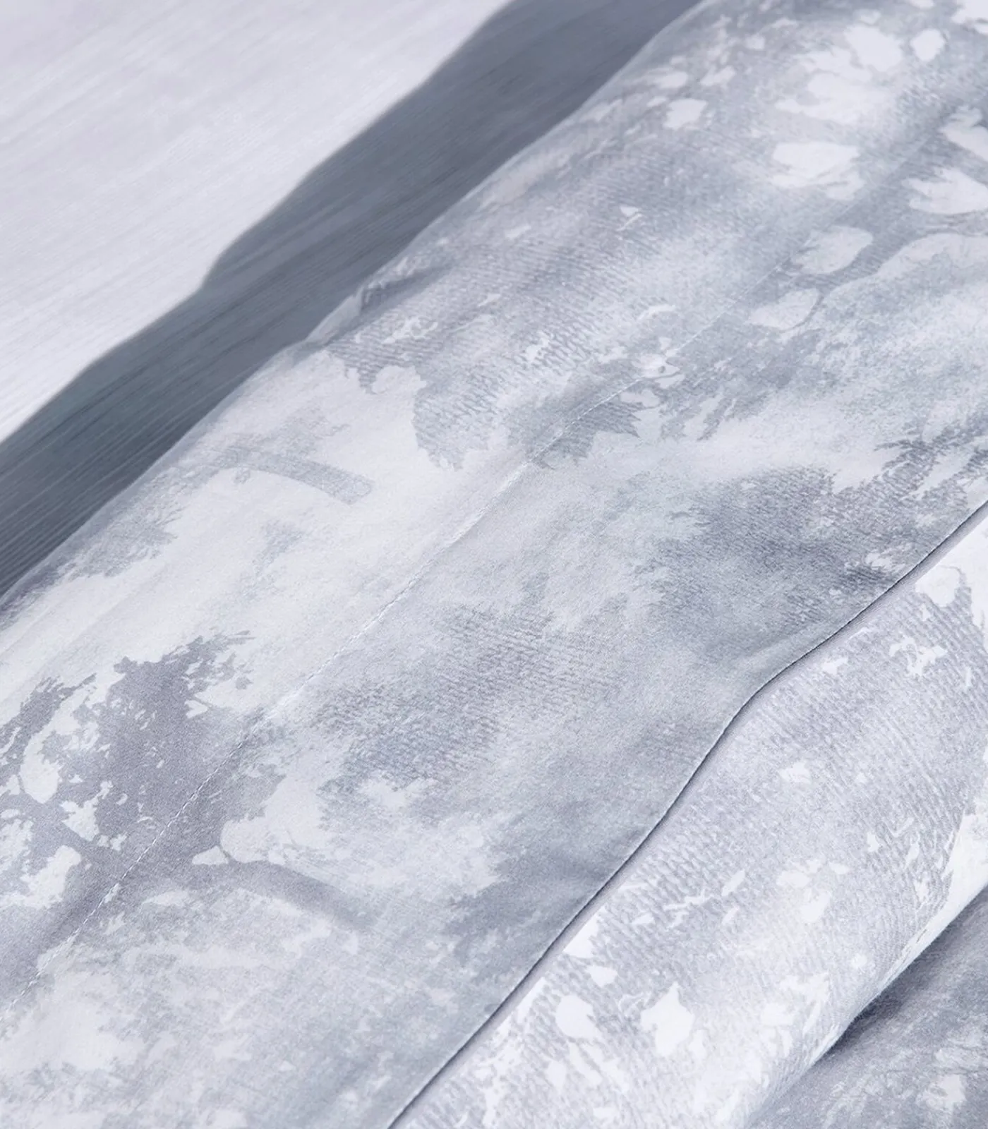Voor– en achterkant bedrukt met aquarelgrijze en blauwachtige esdoornbladeren