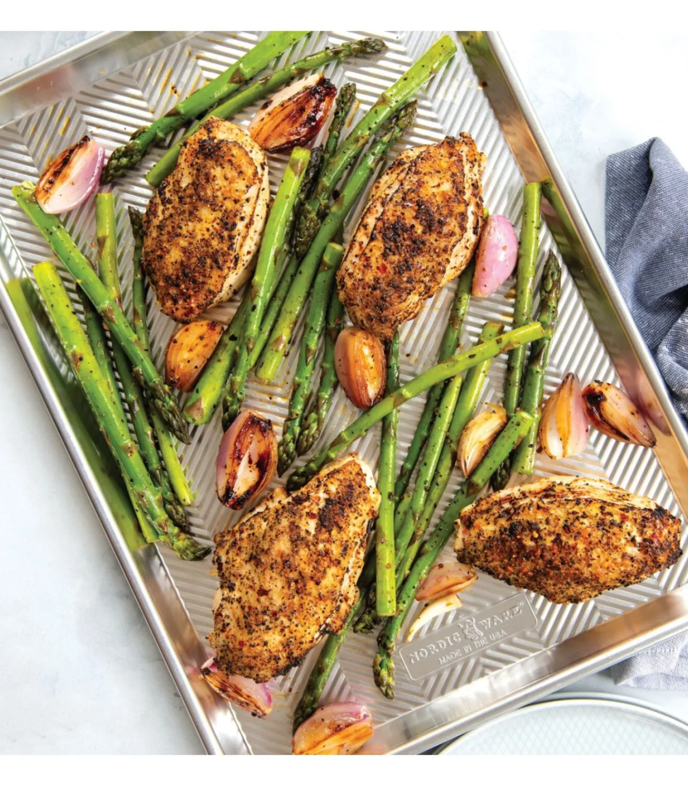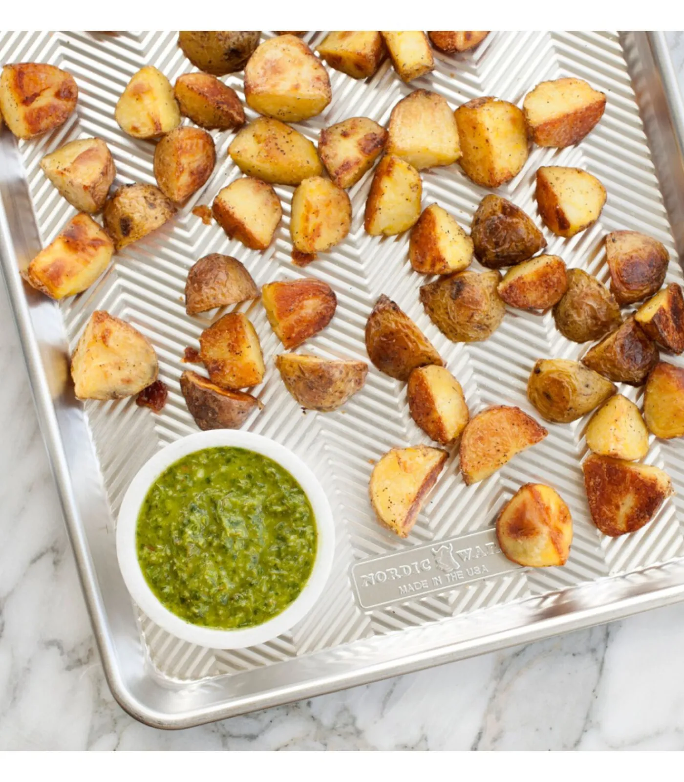 Houd jij er van om de heerlijkste baksels uit de oven te toveren? Dan kan een goede bakplaat natuurlijk niet ontbreken in jouw keuken! De Nordic Ware Bakplaat Prism is perfect voor het bakken van alle gerechten die je maar kan bedenken, van heerlijke koekjes tot minipizza’s, van vis tot groente. De bakplaat is gemaakt van aluminium en heeft een afmeting van 45 x 33 centimeter. Was de bakplaat met de hand af voor optimaal behoud.