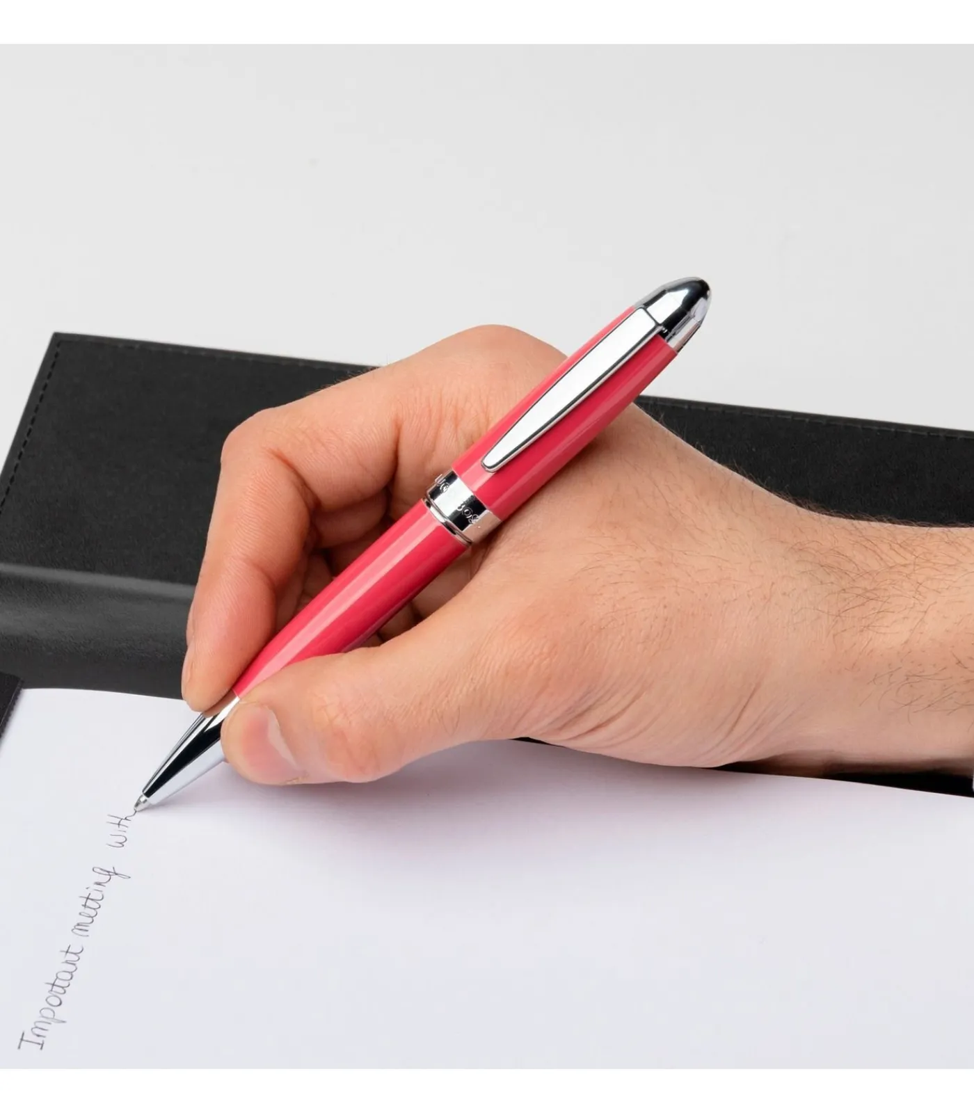 Introducing the HUGO BOSS Ballpoint Pen in a stunning Bright Pink hue. This elegant writing instrument combines style and sophistication, making it a must–have accessory for both men and women. Crafted from premium brass and finished with a luxurious lacquer, it boasts a weighty feel and a chic design that fits comfortably in your hand. The pen’s smooth blue ink glides effortlessly on paper, ensuring a refined writing experience. Perfect for the office or gifting, this exquisite pen showcases your taste for the finer things in life. Elevate your writing with HUGO BOSS. Dimensions: DIA.15/H.138 mm, Material: Brass,Lacquer