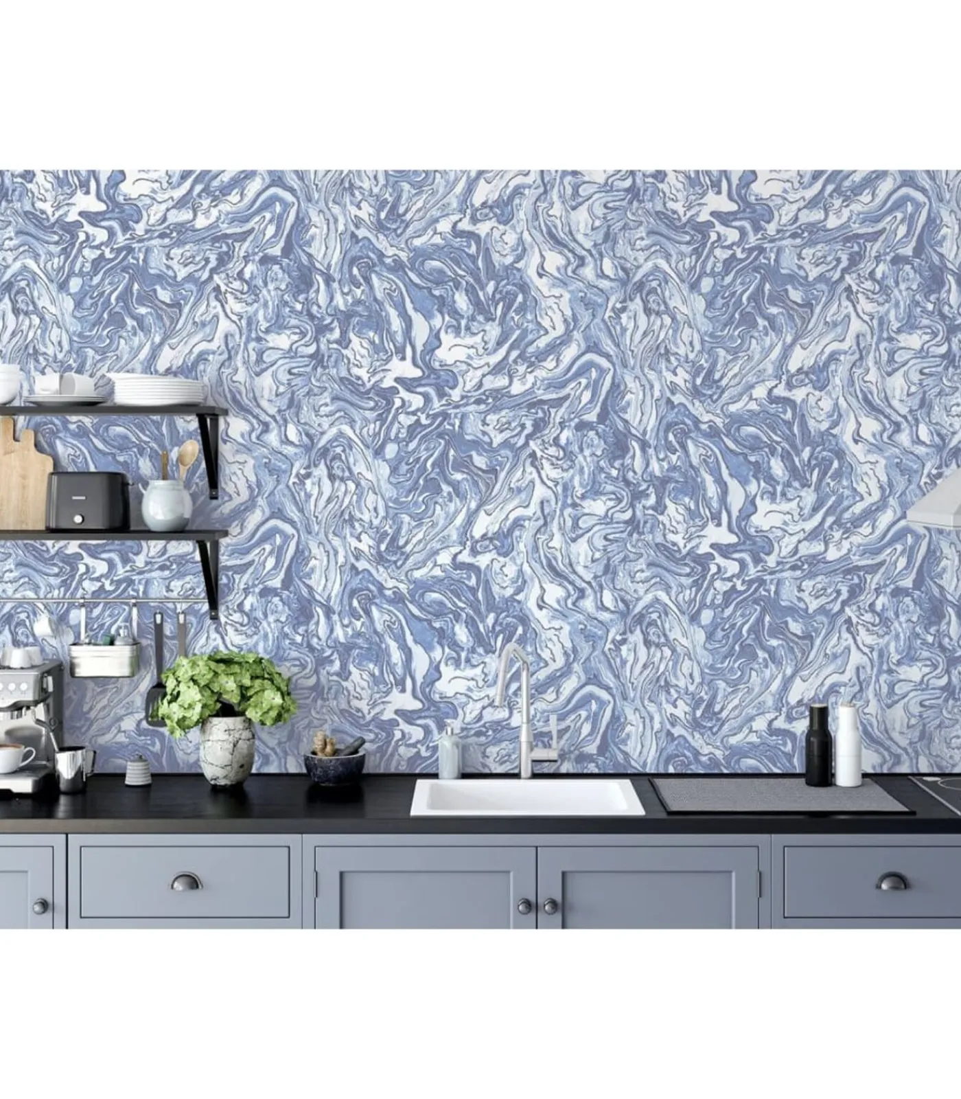 Het heeft een modern design met marmerpatroon in trendy blauw.