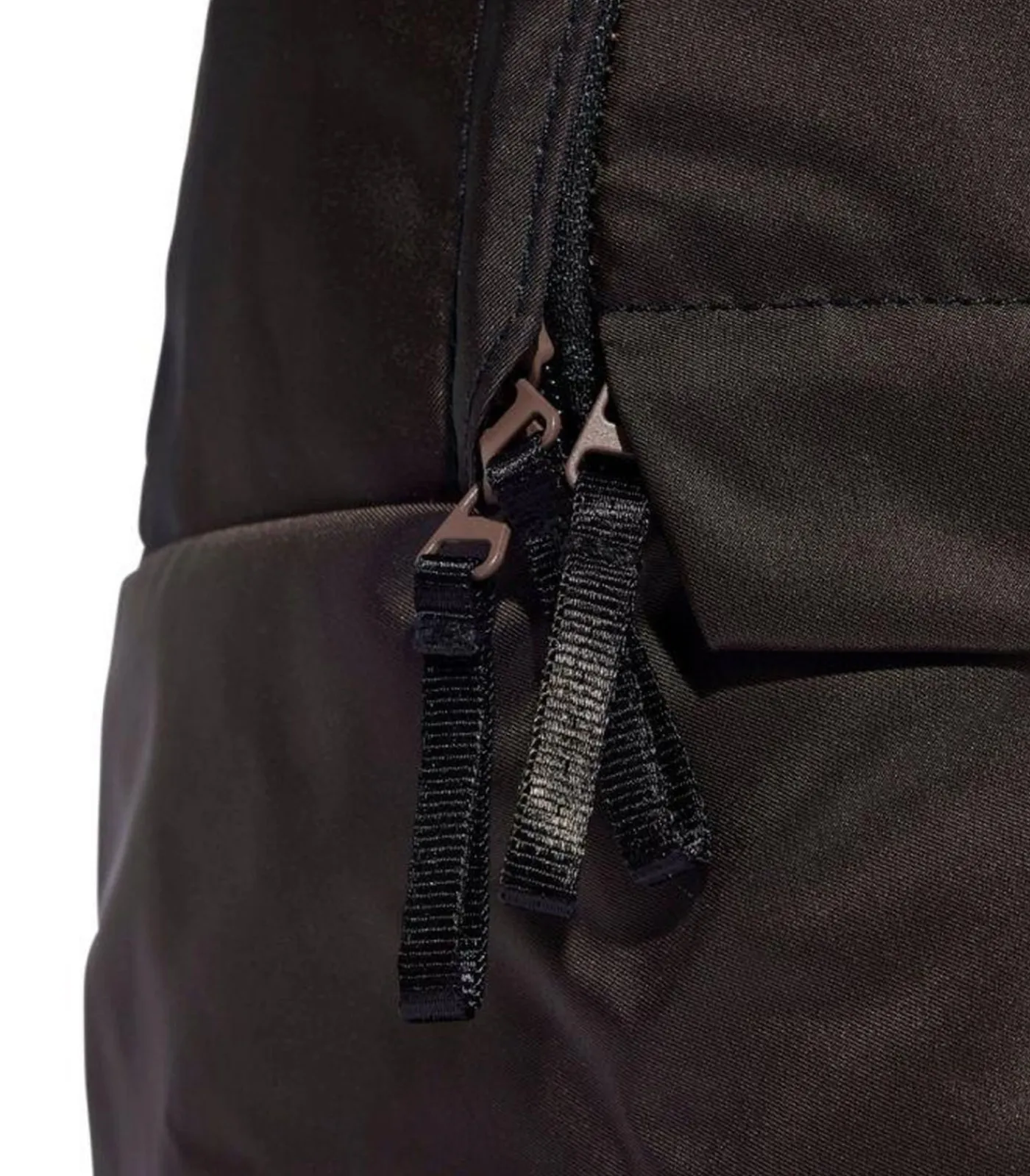 Adidas’ GLOW zwarte rugzak is gemaakt van 65% gerecycled nylon en 35% polyester. Deze zak heeft een lengte van 40cm, breedte van 32cm en biedt een inhoud van 18,75L. Het diepste punt is 15cm. De zak telt drie compartimenten: een hoofdcompartiment, een voorzak en een externe steekzak. Verder beschikt de zak over een verstelbare constructie, handgreep, interne verdeler, brede bretels en ritstrekkers. Deze zak is duurzaam en wordt met een tweewegrits vastgemaakt.