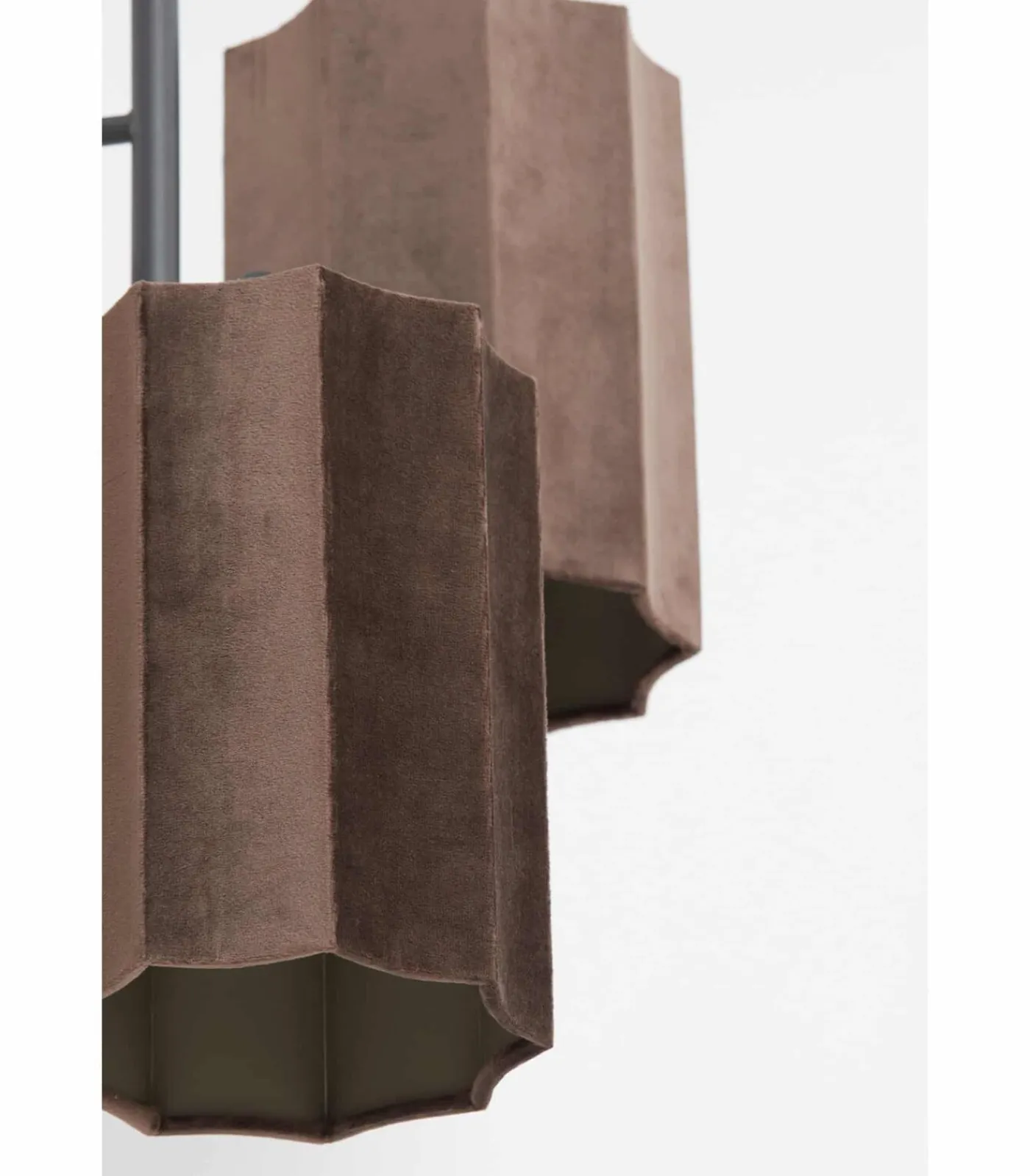 Hanglamp Edisa is dankzij de drie lampenkappen een sfeervolle toevoeging voor boven de eettafel. De kappen zijn gemaakt van een prachtige bruine fluwelen stof en de rest van de lamp is mat zwart. Door deze kleurencombinatie heeft de hanglamp een chique, maar toch moderne uitstraling. Hang de hanglamp boven de eettafel of in de slaapkamer en verlicht zo de ruimte. De hanglamp heeft drie lichtpunten en een afmeting van Ø48×25 cm.
