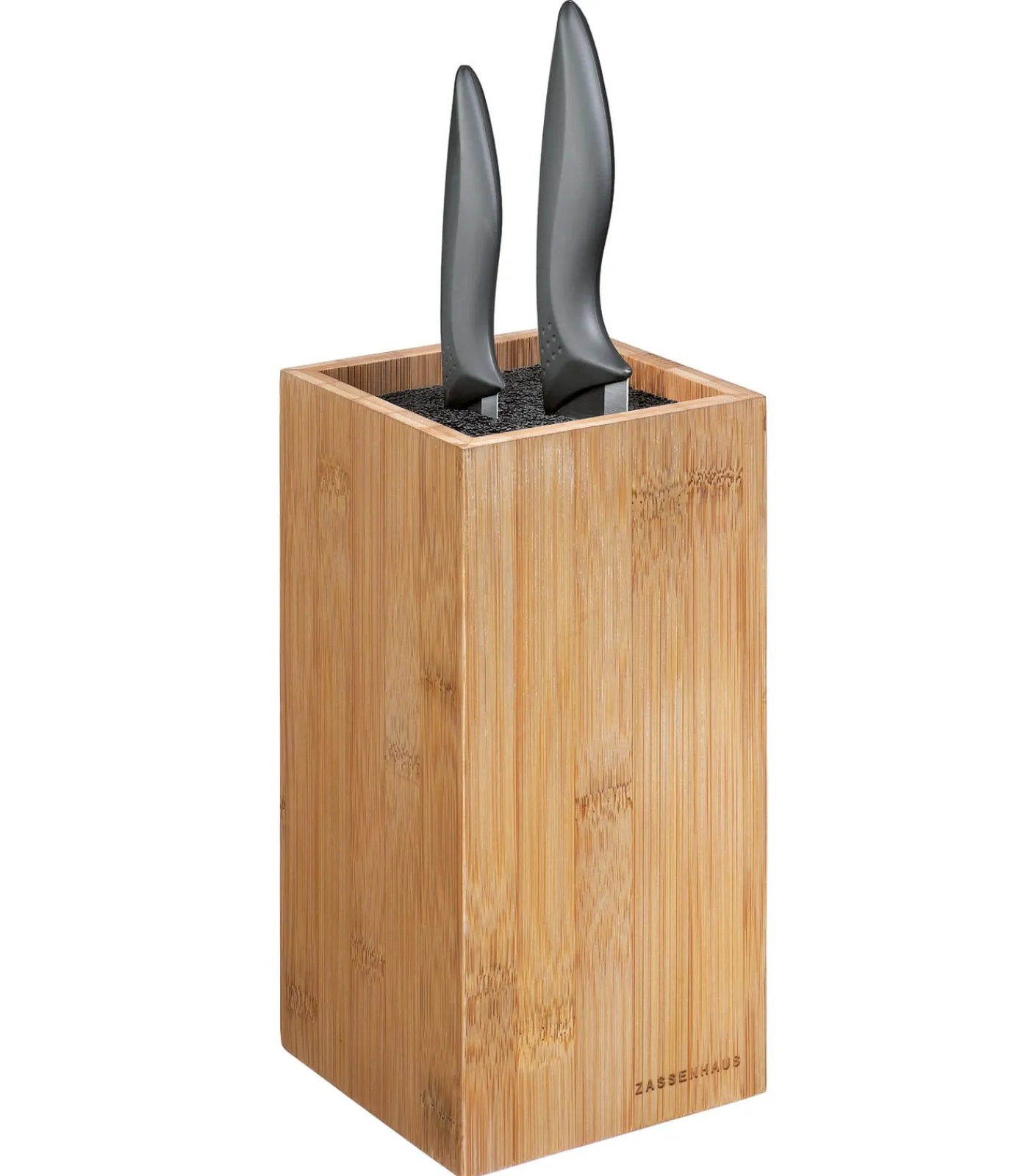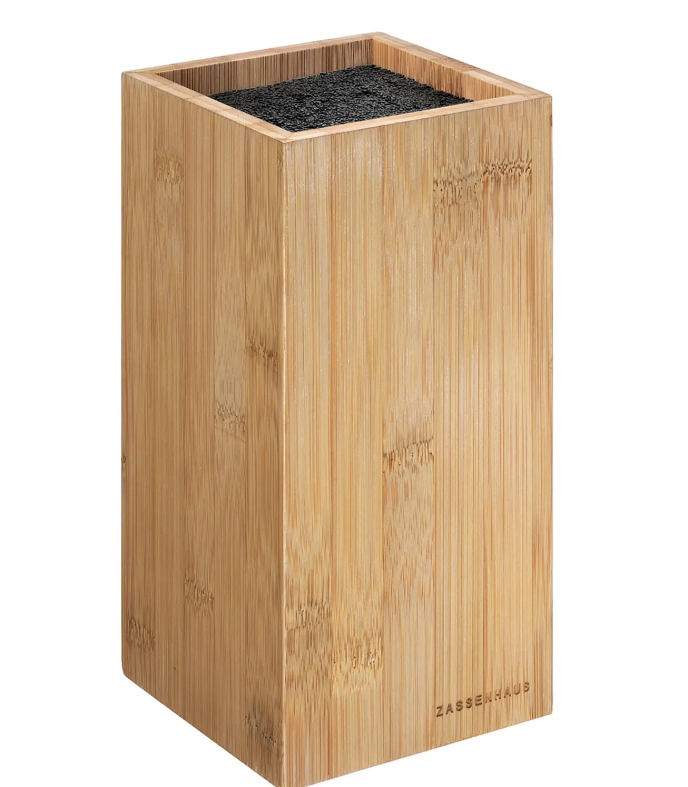 Bescherm jouw messen op een veilige manier met het Zassenhaus Messenblok – voor 5 tot 6 messen – Bamboe. Dit messenblok is gemaakt van sterk en duurzaam bamboe en heeft plek voor 5 tot 6 messen. Bewaar je messen niet langer in een lade, daarvan kunnen ze beschadigen. Met dit blok hou je je dure messen ook makkelijk schoon en bewaar je ze op een veilige manier.
