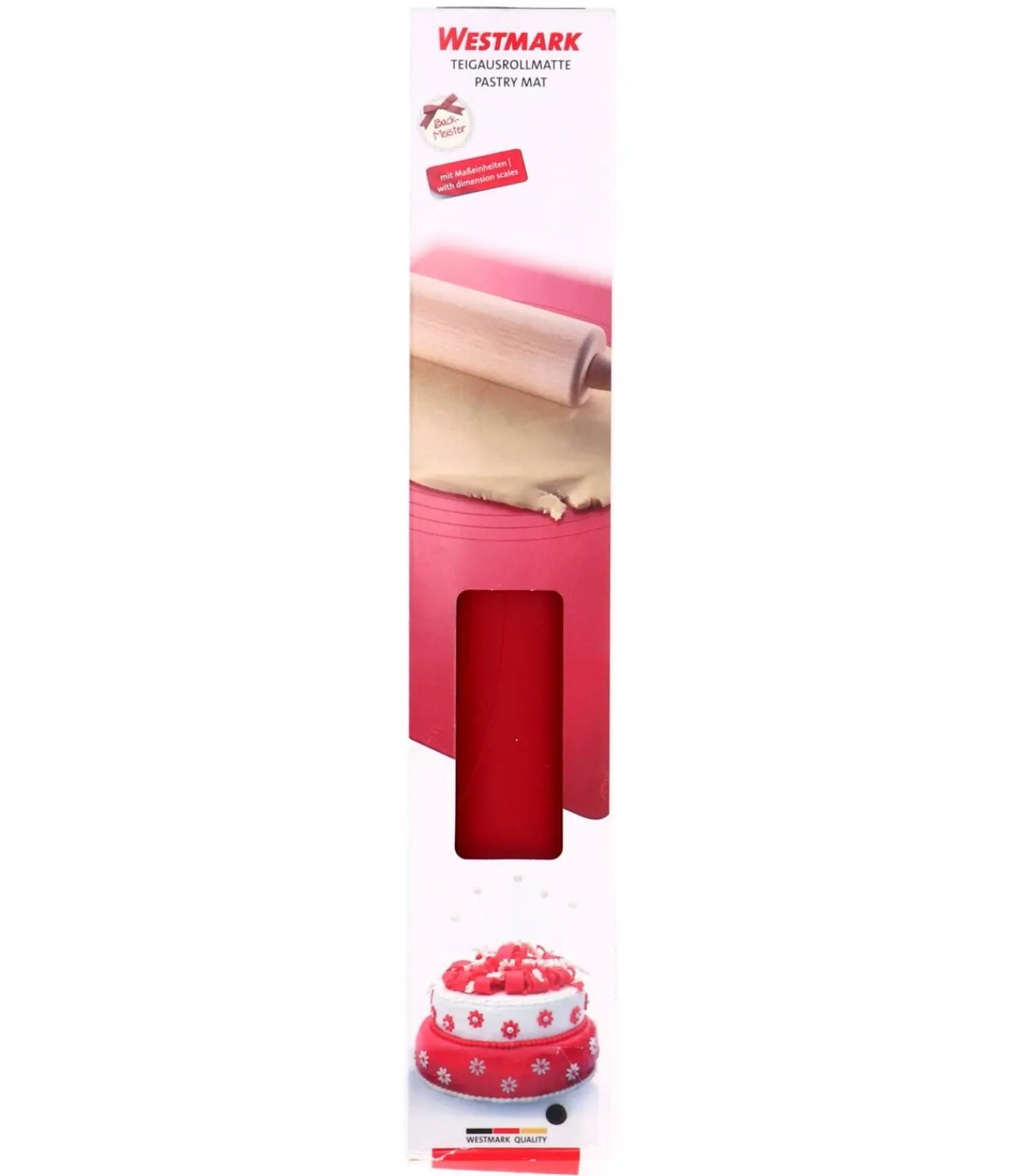 Westmark siliconen deegmat blauw 61,5x41cm keukenaccessoireMet deze siliconen deegmat van Westmark wordt het uitrollen van deeg een fluitje van een cent! Deegmat is het sleutelwoord voor iedereen die graag bakt en houdt van een opgeruimde keuken. Dankzij het handige reliëf met cirkels en maataanduidingen in centimeters en inches, rol je elk deeg perfect uit tot de juiste maat.Het hoogwaardige siliconen materiaal zorgt voor een antikleef effect, waardoor je deeg eenvoudig loslaat en de mat makkelijk schoon te maken is. Of je nu een taart, pizza of koekjes maakt, deze mat is ideaal voor thuisbakkers én professionals. Bovendien is hij vaatwasserbestendig en duurzaam, zodat je er jarenlang plezier van hebt.Extra informatieAntikleef siliconen materiaal voor eenvoudig uitrollenMet handige maataanduidingen en cirkelsVaatwasserbestendig en duurzaam in gebruikPerfect formaat: 61,5x41cm, ideaal voor elke keuken