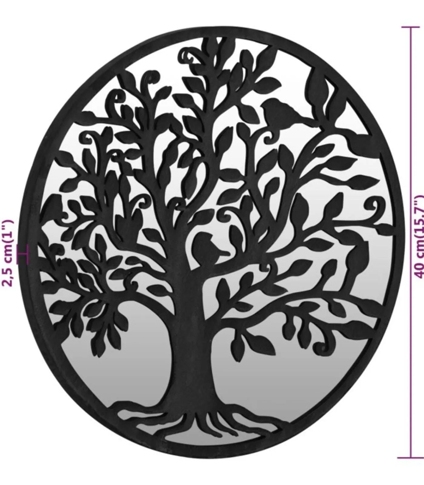 De spiegellijst is gemaakt van ijzer, waardoor hij duurzaam en stabiel is. Het decoratieve boomdesign maakt de spiegel geschikt voor buiten. Hij kan gebruikt worden om een tuinelement te accentueren door het in de spiegel te reflecteren of om het licht naar een donkere hoek te buigen. Een spiegel in je tuin is een creatieve manier om de uitstraling te versterken en de ruimte groter te laten lijken. Dankzij het voorgeboorde gat aan de bovenkant is de decoratieve spiegel eenvoudig aan de muur te monteren.