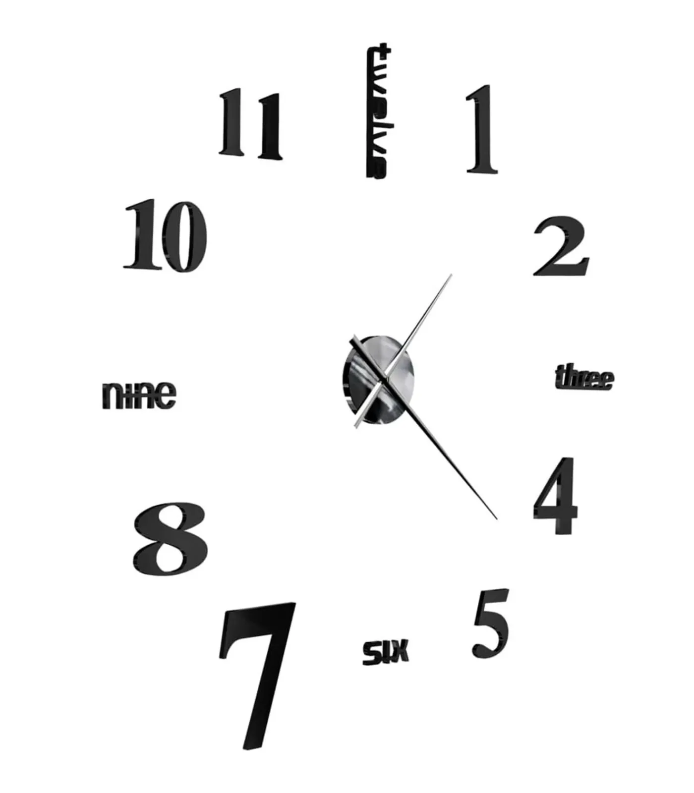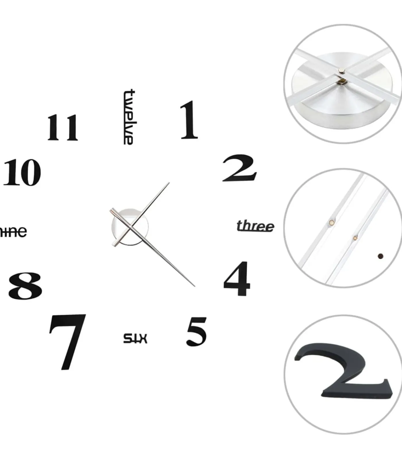 De klok is voorzien van een 3D–effect dat het middelpunt van je interieur wordt. Hij is ook een doe–het–zelf–item, wat betekent dat je de grootte van de klok zelf kan bepalen op basis van jouw behoeften en voorkeur. De klok heeft een glanzend uiterlijk die bijdraagt aan zijn aantrekkelijke ontwerp. De klok geeft je interieur een nette en opgeruimde uitstraling. De installatie is eenvoudig.