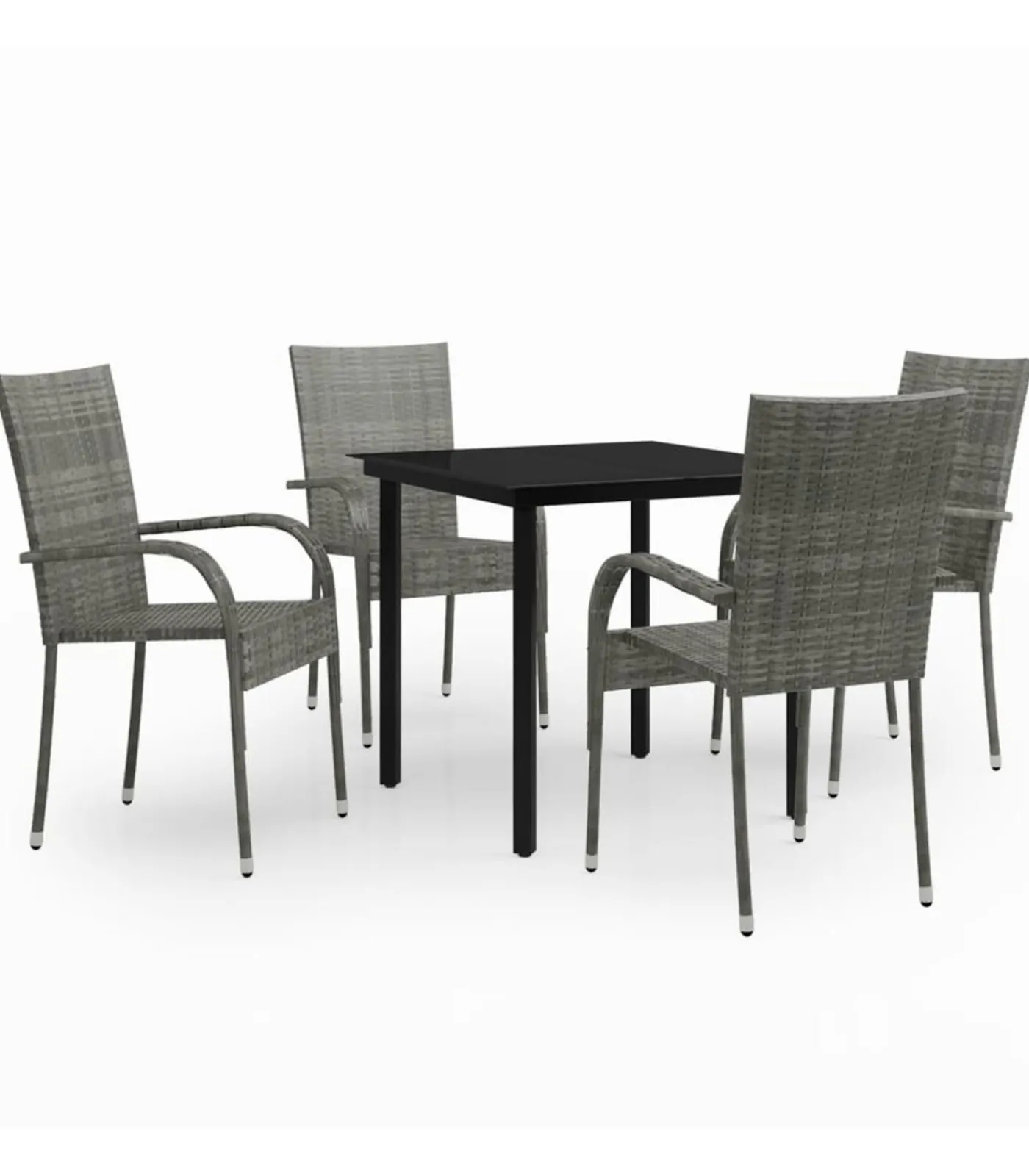 De gepoedercoat stalen frames maken de tafel en stoelen sterk, stevig en geschikt voor dagelijks gebruik. Dankzij het waterbestendige PE–rattan zijn de stoelen gemakkelijk schoon te maken en geschikt voor dagelijks gebruik. Daarnaast is het vlakke, glazen tafelblad eenvoudig schoon te maken met een vochtige doek. Het blad is perfect voor het plaatsen van maaltijden, drankjes en decoratieve spullen.