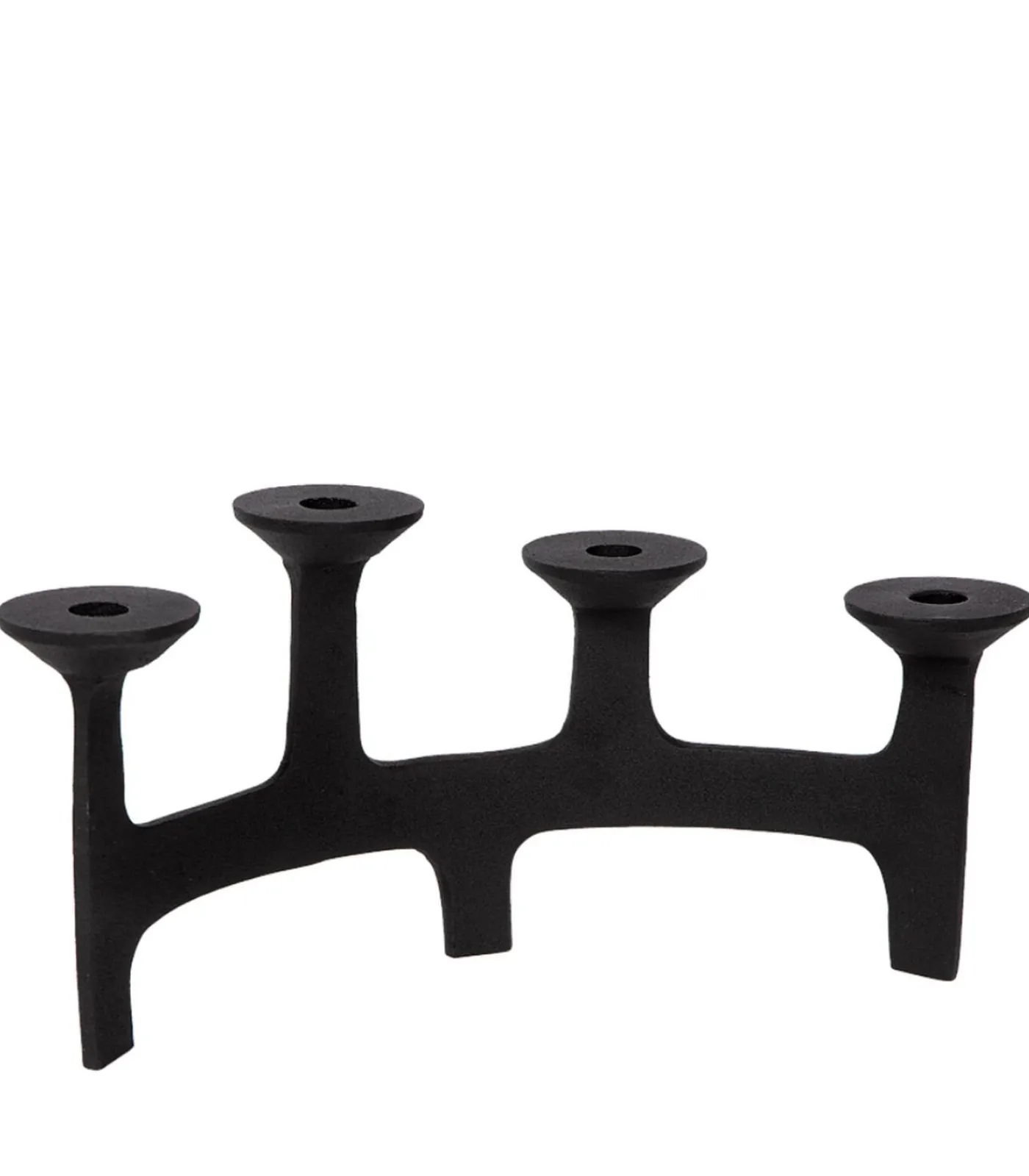 De ‘Amour’ kaarsenhouder is een stijlvolle toevoeging aan elke eettafel, ontworpen om vier dinerkaarsen te ondersteunen. Zijn zwarte metalen afwerking geeft het een moderne uitstraling die zeker de aandacht zal trekken. Met een hoogte van 18,5 cm, een breedte van 39,5 cm en een lengte van 14 cm, heeft deze kaarsenhouder een robuuste aanwezigheid zonder overweldigend te zijn. Het gewicht van 900 gram zorgt voor stabiliteit en voorkomt gemakkelijk omvallen, waardoor het een praktische en elegante keuze is. Zoekwoorden : Kandelaar, Kaarshouder, Kaarsenhouder, Elegant, Design