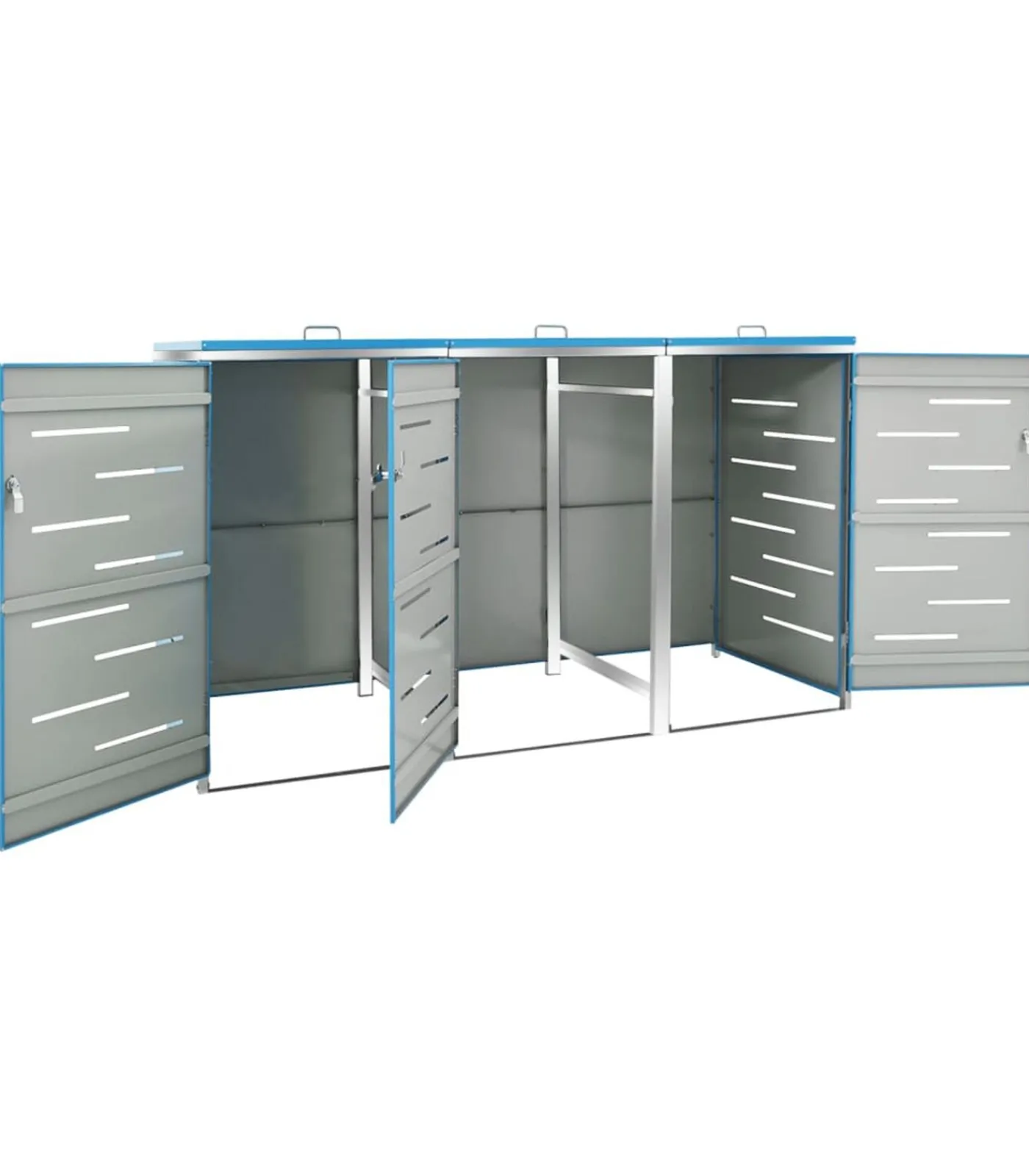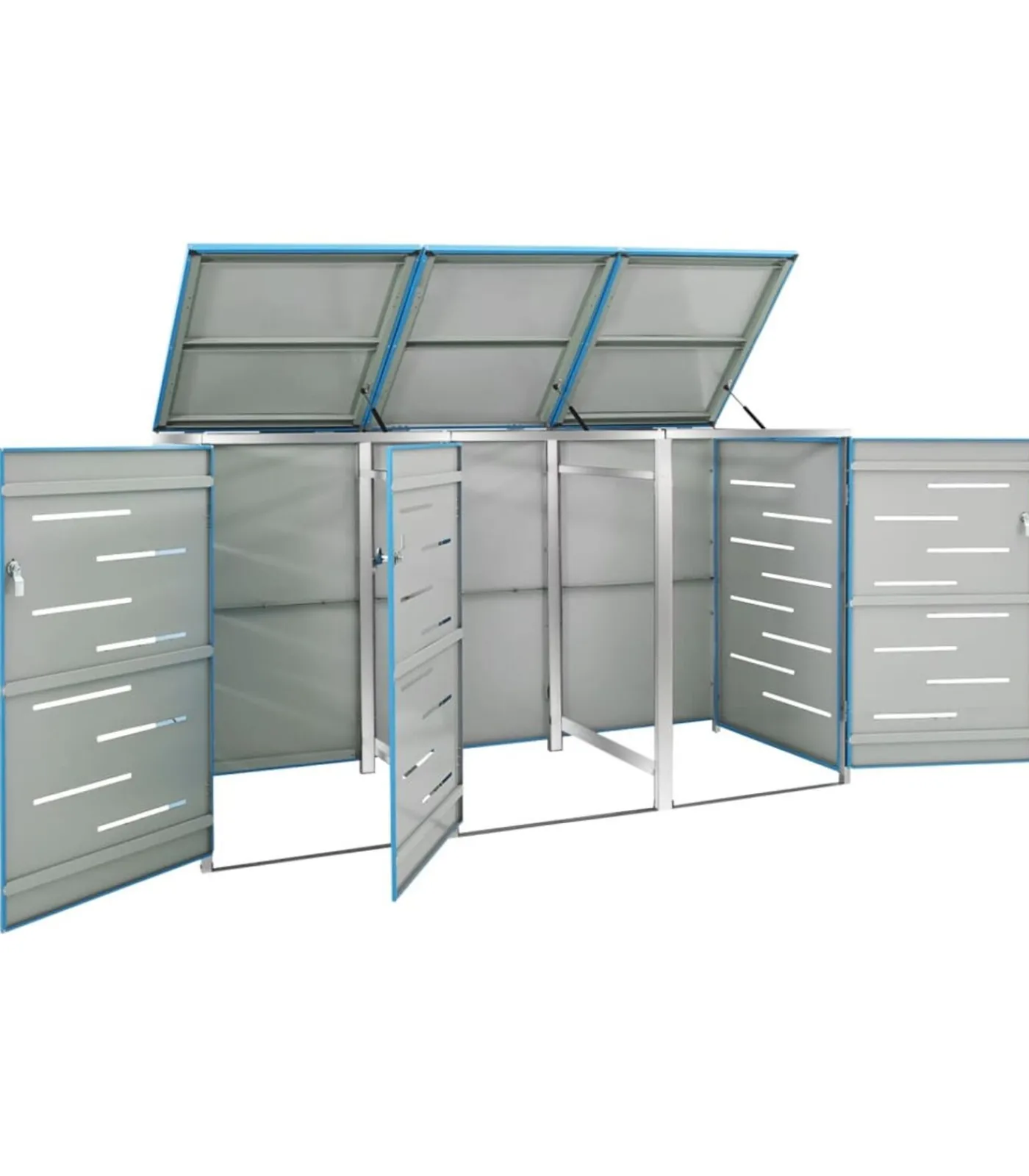 Deze vuilnisbakschuur is gemaakt van gegalvaniseerd stalen panelen en een roestvrijstalen frame, waardoor hij buitengewoon stevig en roestbestendig is. Het holle ontwerp zorgt voor luchtcirculatie en voorkomt nare geurtjes in de berging, en het vergrendelingssysteem zorgt voor een veilige opslagplek. Het handige deksel en de veren maken het gemakkelijk om de afvalbak te plaatsen en te verwijderen!