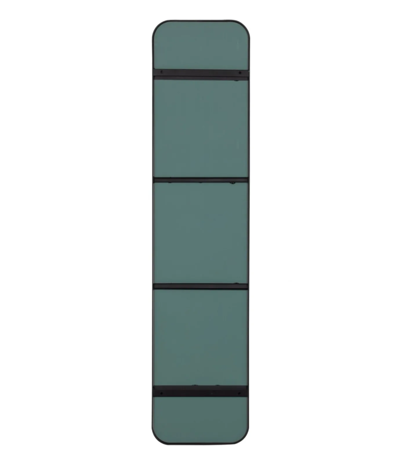 De spiegel is gepoedercoat. Er zit een metalenstrip achter de spiegel, voorzien van 2 gaten waaraan de spiegel opgehangen kan worden. Schroeven worden niet bijgeleverd.