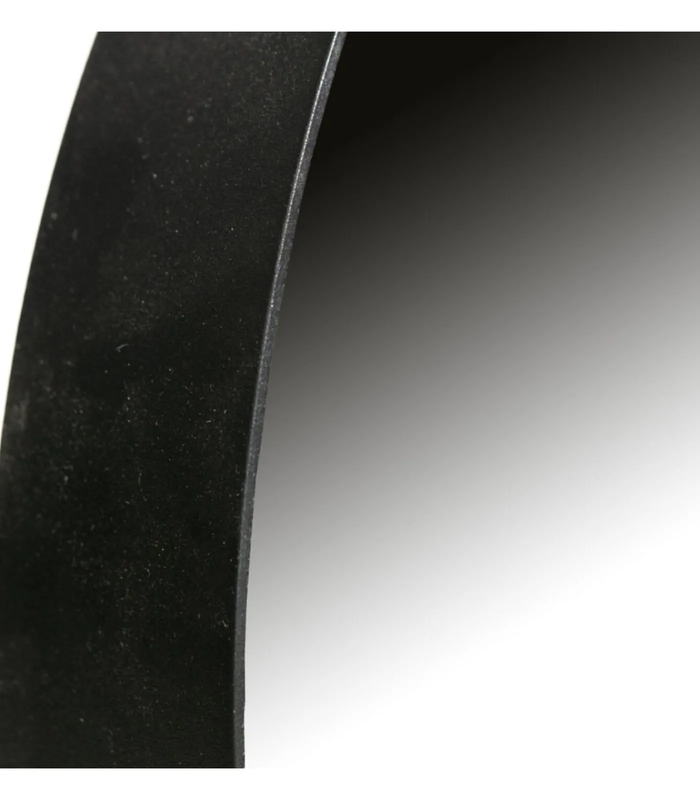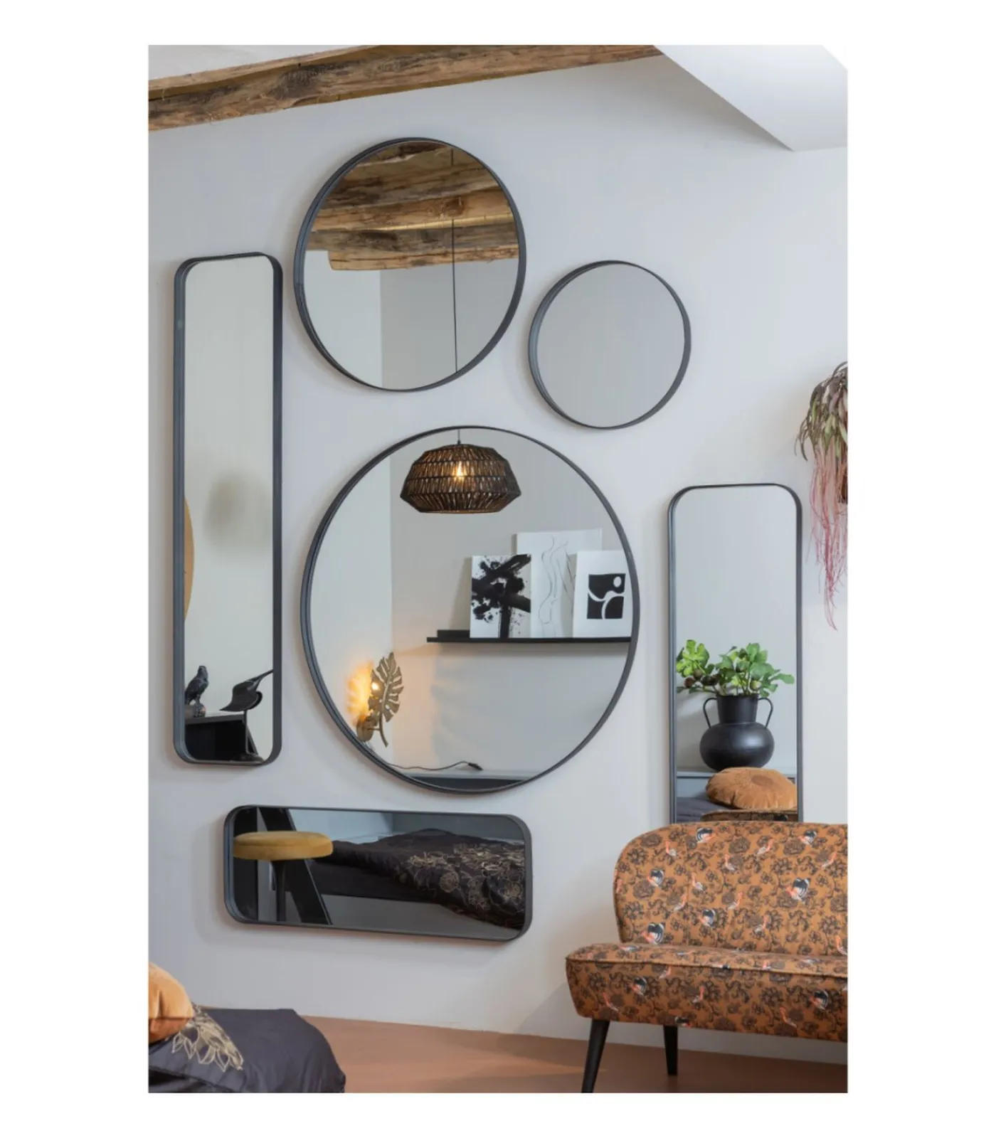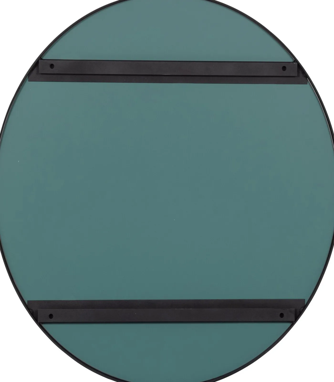 De spiegel is gepoedercoat. Er zit een metalenstrip achter de spiegel, voorzien van 2 gaten waaraan de spiegel opgehangen kan worden. Schroeven worden niet bijgeleverd.