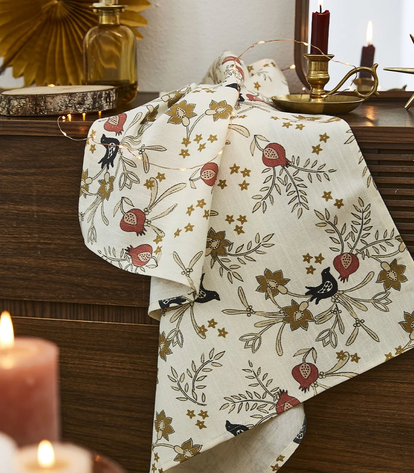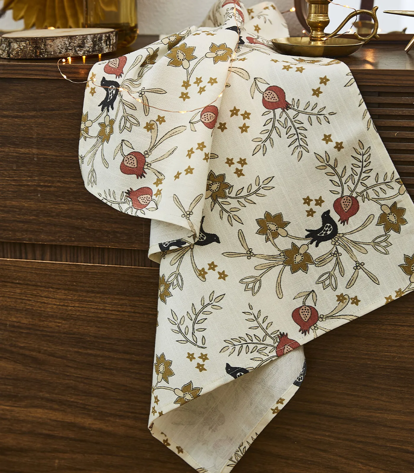 Geef uw keuken een beetje weelderige natuur met de theedoek Grenades, verkrijgbaar in ivoor of kaki.