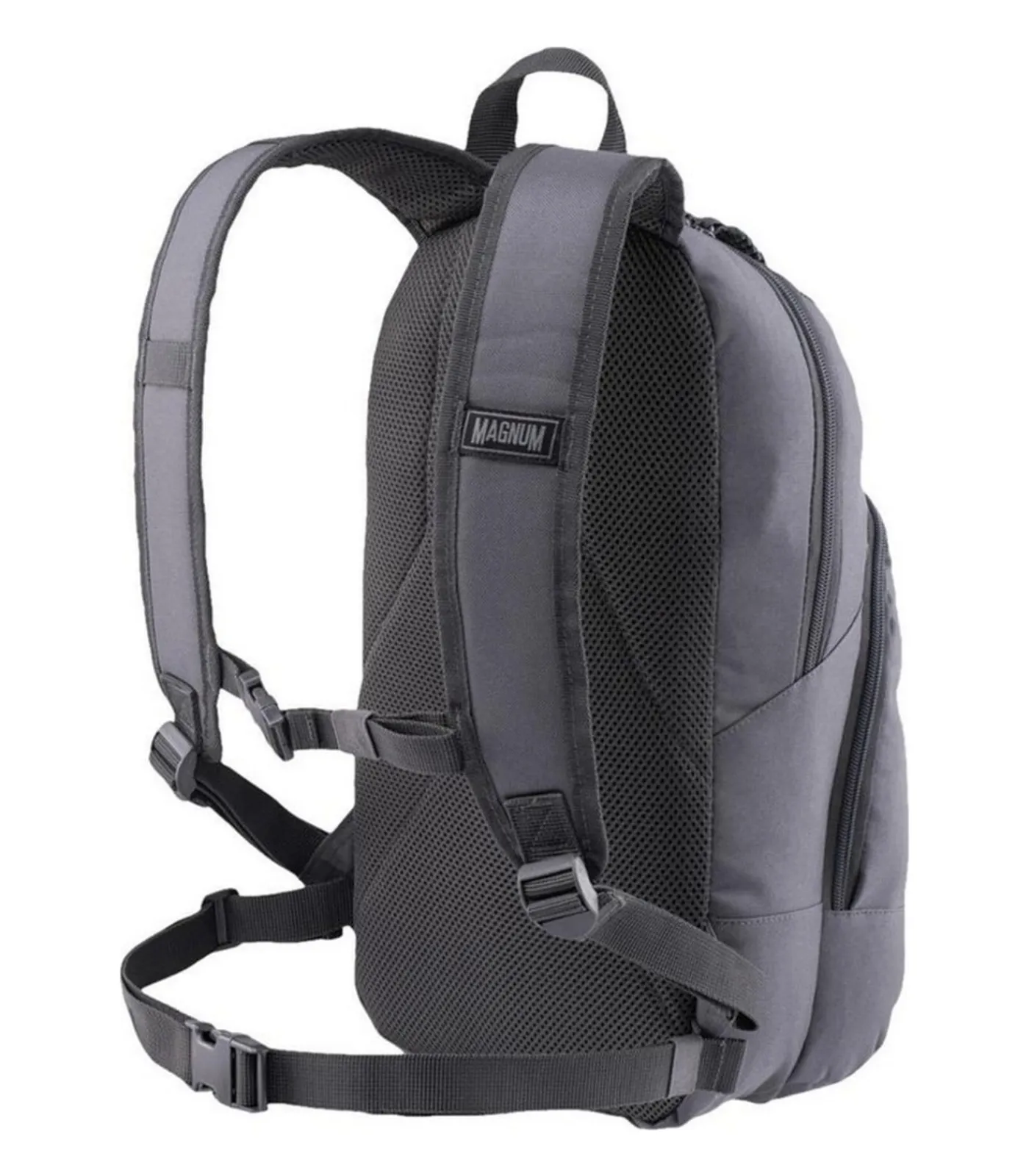 In deze productomschrijving worden de belangrijkste specificaties en kenmerken van de MAGNUM Kamel rugzak beschreven. De rugzak is gemaakt van duurzaam polyester en meet 45 cm in de hoogte, 21 cm in de lengte en 17 cm in de breedte. De rugzak heeft een gestructureerd ontwerp met logo–opdruk. De sluiting wordt verzorgd door een veelzijdige tweewegrits. De verstelbare riemen omvatten borst–, schouder– en heupriemen voor een comfortabele pasvorm op maat. Extra functies zijn een afneembare heupriem, handgreep, intern H2O–systeem, MOLLE–systeem en gewatteerde rug voor comfort. De opbergvakken bestaan uit een hoofdvak met rits. Een enkel voorvak met rits biedt extra organisatie. Met een capaciteit van 15 liter biedt deze rugzak veelzijdige draagmogelijkheden voor dagelijks woon–werkverkeer of voor op reis.