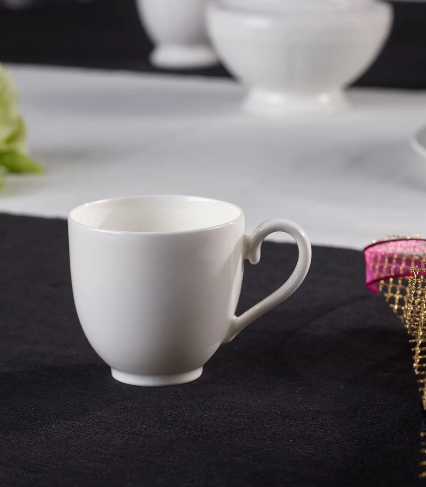 Villeroy & Boch biedt met White Pearl extreem delicaat porseleinen serviesgoed in een klassiek design. Het stralende wit en de subtiele decoraties onderstrepen het elegante karakter van de collectie. Villeroy & Boch staat sinds 1748 voor porselein van de allerbeste kwaliteit. Deze hoogwaardig ontworpen espressokopjes van de collectie White Pearl overtuigen met hun bescheidenheid en gratie, en slaan bij iedere gelegenheid een goed figuur. Combineer espressogenot met expressief design. Natuurlijk geschikt voor de vaatwasser en magnetron.