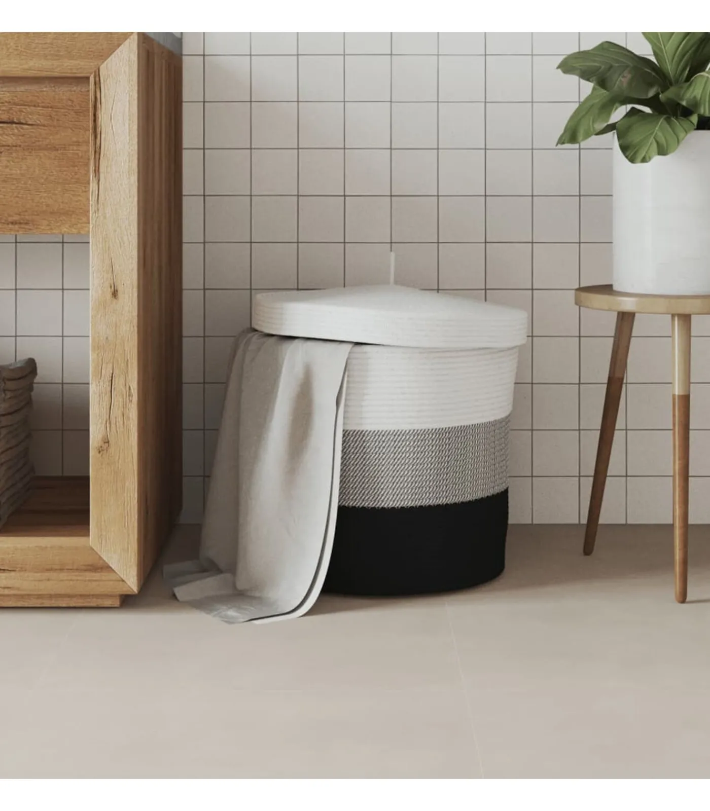 Duurzaam materiaal: de mand is gemaakt van geweven katoenen touwen. Het staat bekend om zijn ademende vermogen, zachtheid en uitzonderlijke duurzaamheid.