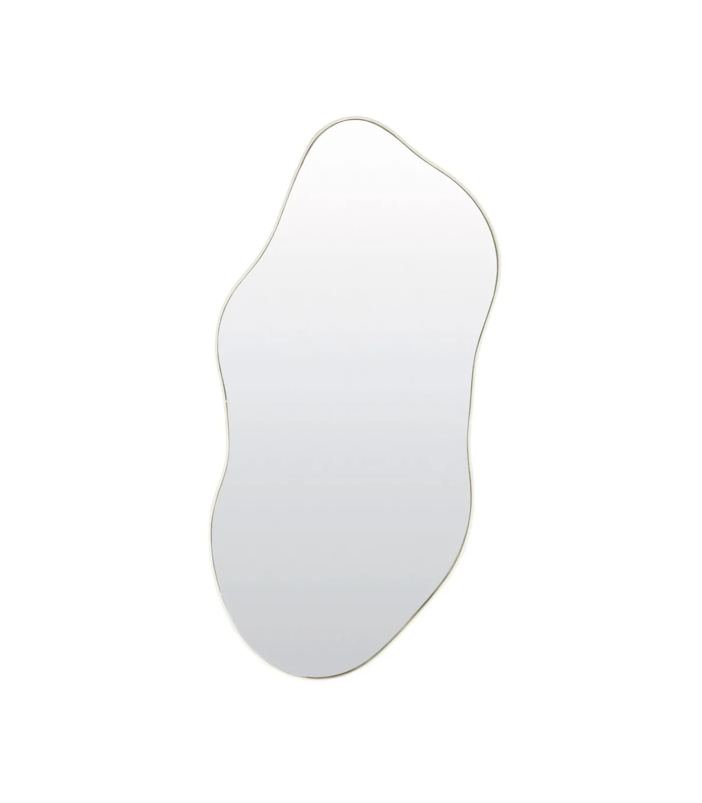 Maak een stijlstatement in huis met deze grote organisch gevormde spiegel. Het vloeiende design doorbreekt rechte lijnen en geeft je interieur meteen een speelse, eigentijdse uitstraling. Perfect om een muur tot leven te brengen én om meer licht en diepte in de ruimte te creëren. Het dunne, subtiele frame in een zachte neutrale kleur benadrukt de organische vorm zonder te overheersen. Dankzij zijn royale formaat weerkaatst hij veel licht, waardoor zelfs kleinere ruimtes groter en luchtiger ogen. Of je hem nu in de hal, woonkamer of slaapkamer hangt – deze spiegel trekt altijd de aandacht. Met een hoogte van ongeveer 120 cm is dit grote organisch gevormde spiegel ideaal als eyecatcher boven een dressoir, in een lange gang of als elegante toevoeging aan je dressing. Het tijdloze ontwerp maakt hem geschikt voor uiteenlopende woonstijlen, van modern tot Scandinavisch en bohemian. Een spiegel die functionaliteit en design moeiteloos combineert, stijlvol, uniek en altijd in het oog springend.