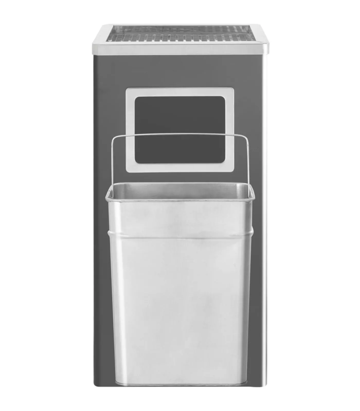 Onze hoogwaardige asbak/prullenbak wordt gekenmerkt door de elegantie van staal en een asbakontwerp. Hij heeft niet alleen een geavanceerd ontwerp, maar is ook zeer functioneel. Onze afvalcontainer heeft een grote afvalbak met daarboven een asbak. Hij kan zowel binnen als buiten worden gebruikt en is dus ideaal voor hotels, restaurants, kantoren, enz.