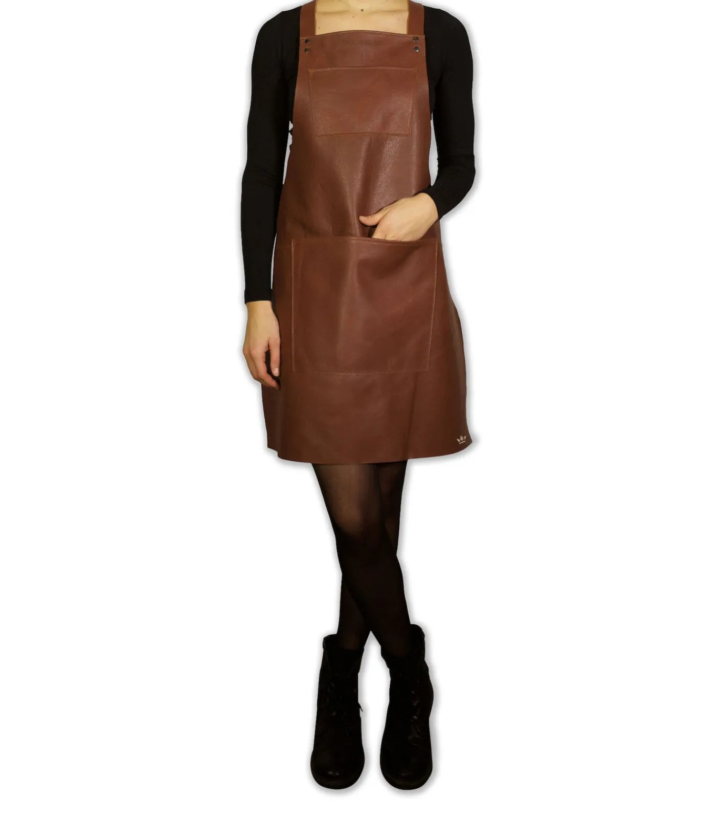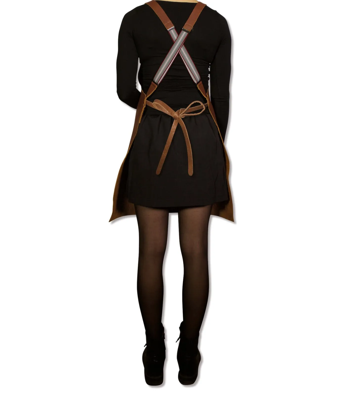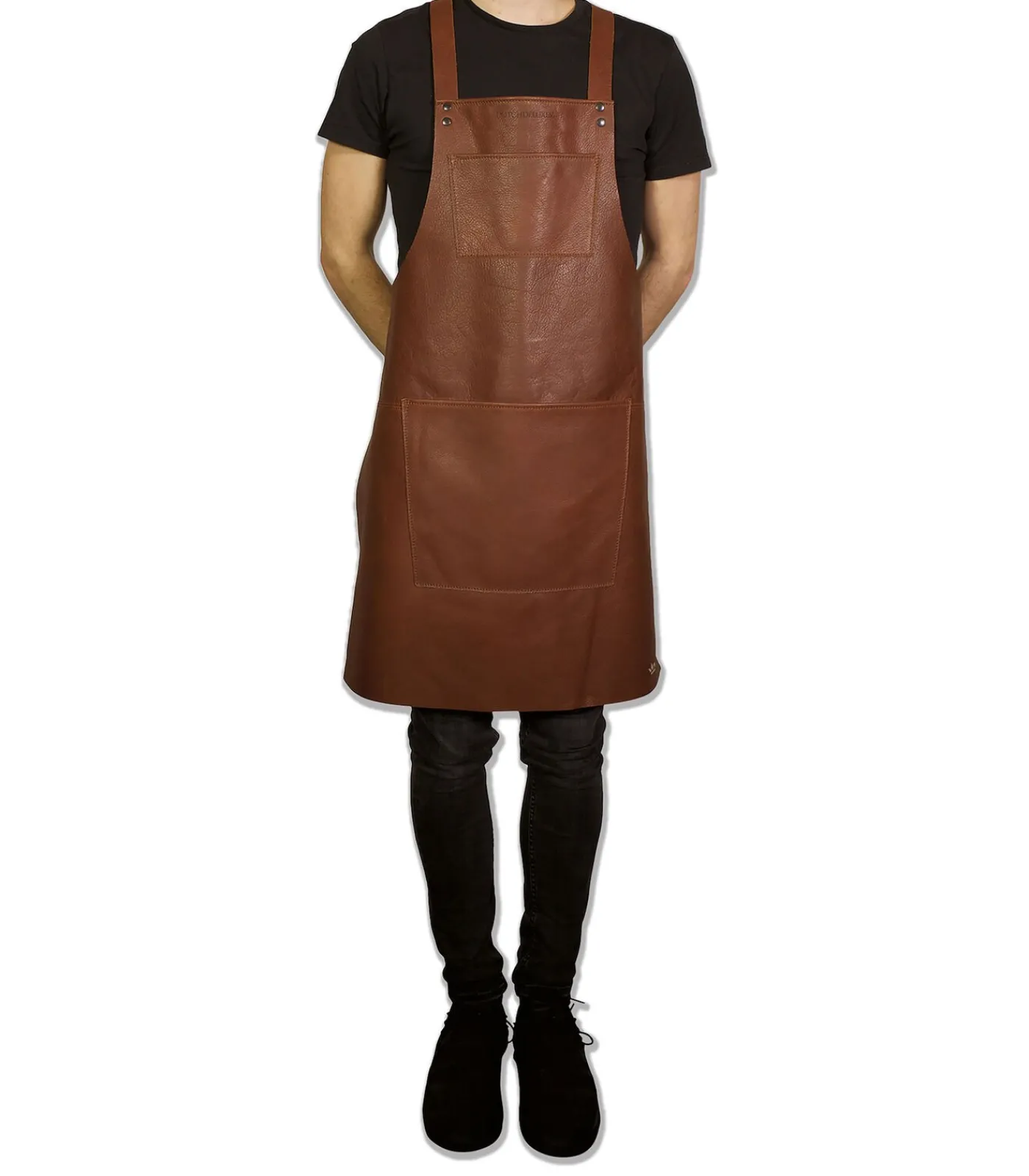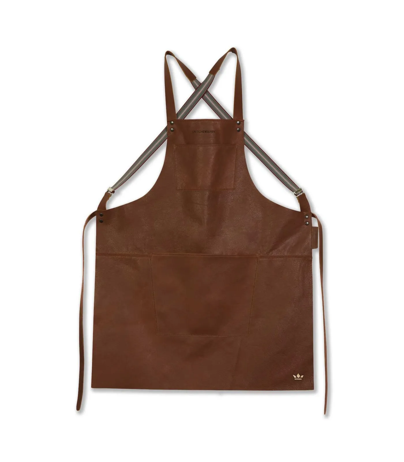 New BBQ Lederen schort met bretellen – Bruin Keuken- & Tafellinnen