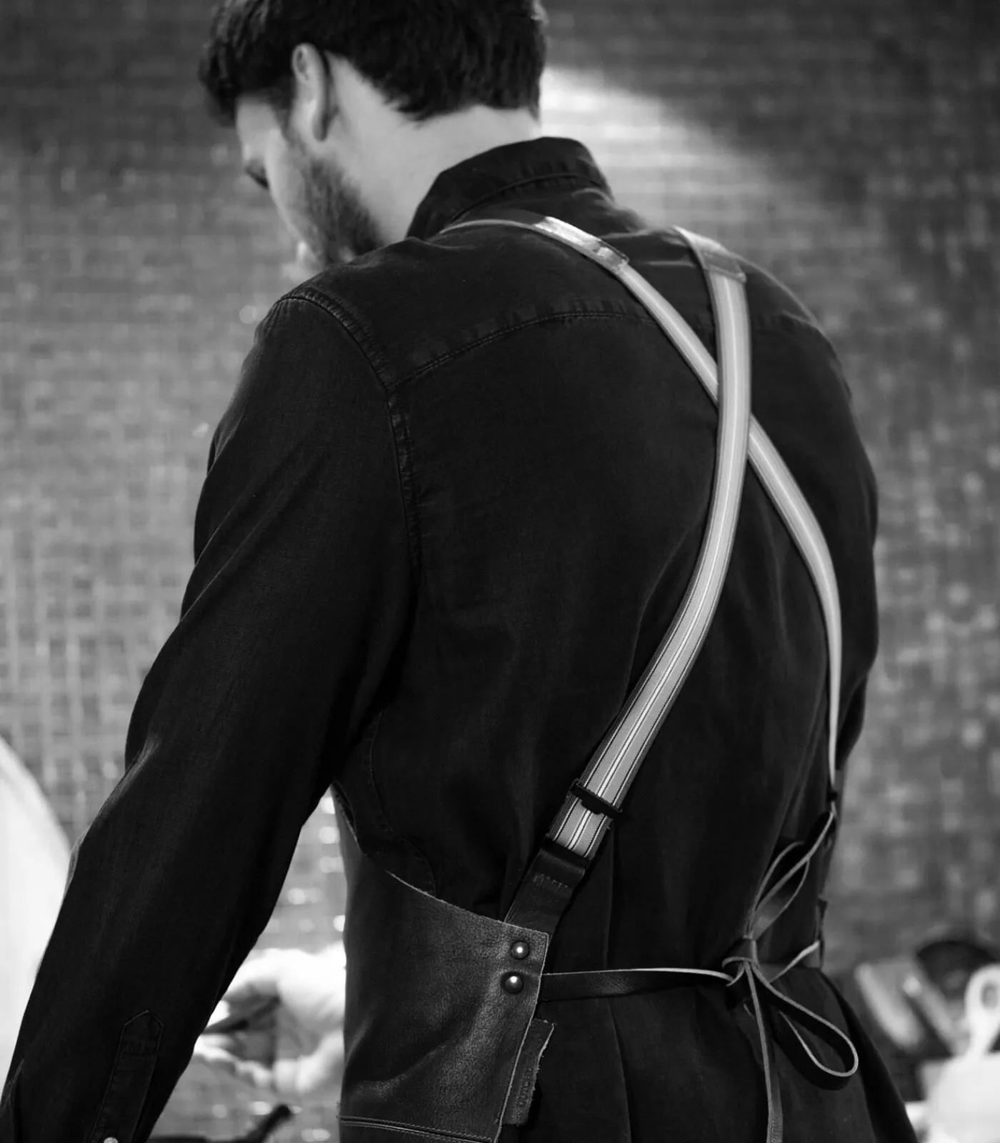 De Dutchdeluxes lederen schort met bretellen in de kleur zwart is handgemaakt in Nederland van 100% volnerfleer, een natuurlijk product dat ouder wordt. Regelmatig gebruik en het verstrijken van tijd zal een mooie patina opleveren, een zacht laagje op de oppervlakte van het leer. Dit product wordt dus nog mooier door het te gebruiken! Zit erg comfortabel dankzij de verstelbare bretels op de rug. Voor gebruik in de keuken of aan de barbecue in de tuin. .Uitstekende bescherming Het Dutchdeluxes schort biedt uitstekende bescherming tijdens het koken en barbecueën. Het stevige volnerfleer beschermt je tegen hitte en spatten, terwijl de verstelbare bretels zorgen voor een comfortabele pasvorm. .Uniek en handgemaakt Dit schort combineert duurzaamheid en stijl, ideaal voor zowel thuisgebruik als professioneel gebruik in de horeca. Het handgemaakte leer wordt mooier met de tijd en gebruik, waardoor je een uniek en persoonlijk item krijgt. De verstelbare bretels maken het geschikt voor iedereen, ongeacht lichaamsbouw. .Kies voor het Dutchdeluxes lederen schort Handgemaakt van 100% volnerfleer Verstelbare bretels voor ultiem comfort Ontwikkelt een mooie patina na verloop van tijd Geschikt voor gebruik in de keuken en bij de barbecue Stijlvol en functioneel ontwerp .Onderhoud en advies Dit leren schort is eenvoudig te onderhouden. Maak het leer schoon met een vochtige doek en vermijd het gebruik van agressieve schoonmaakmiddelen. Om de kwaliteit van het leer te behouden, kun je het schort af en toe behandelen met een leerconditioner. Vermijd langdurige blootstelling aan extreem hoge temperaturen om de levensduur van het schort te verlengen.