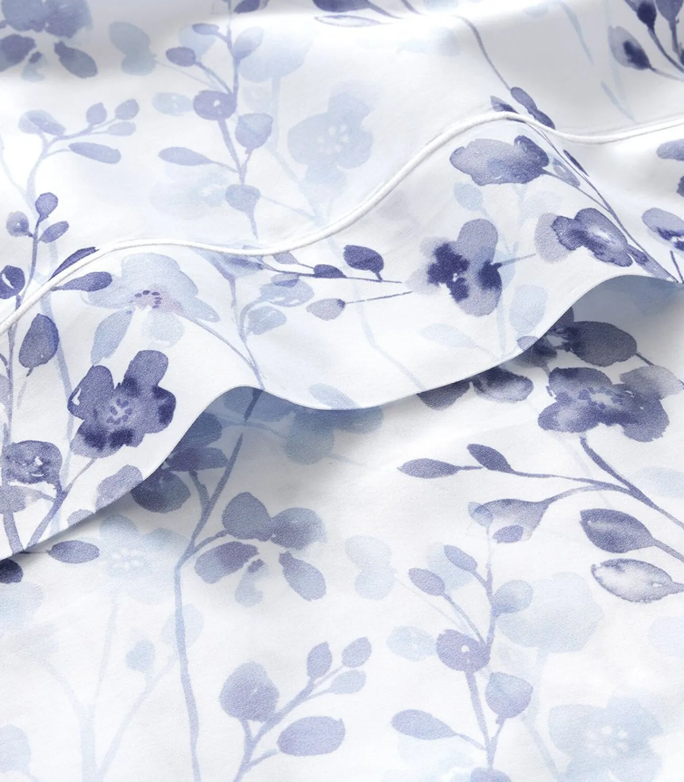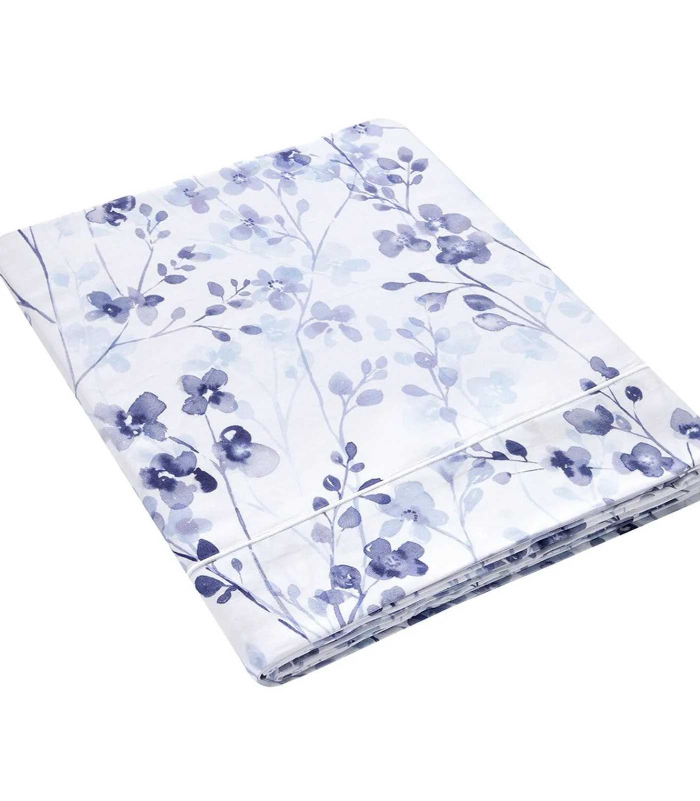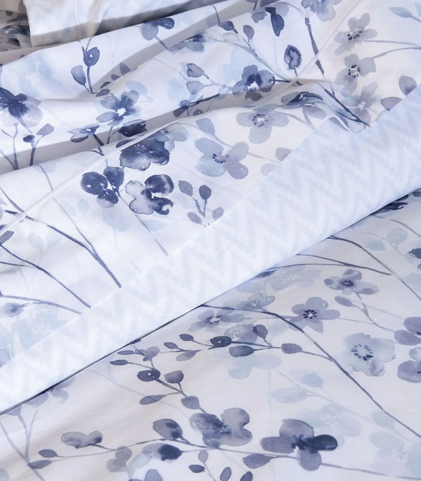 Aquarelblauwe bloemenprint op optisch witte achtergrond