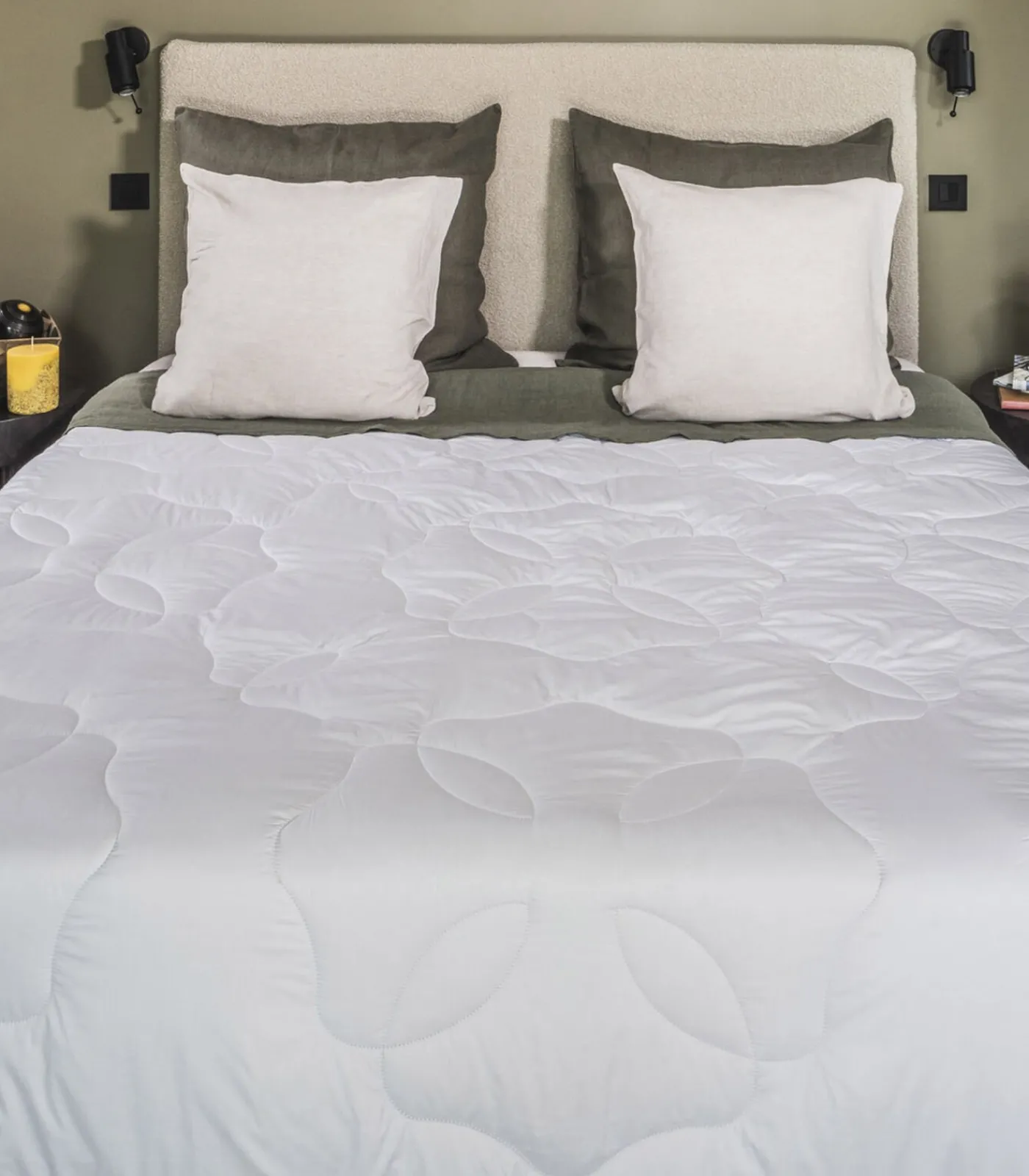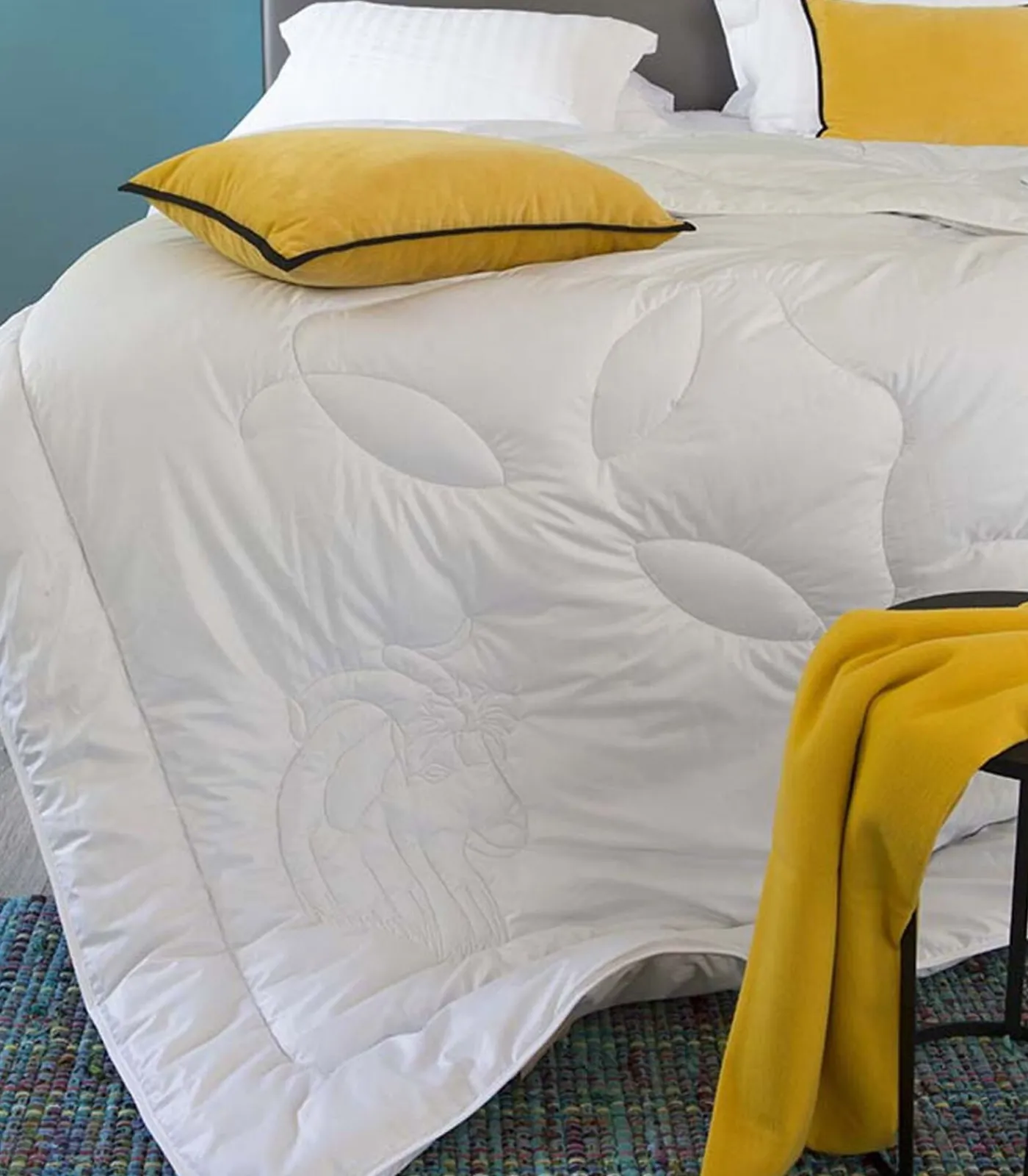 Kasjmier is een luxueuze vezel die doet denken aan verre oorden en die door onze meester–wolmakers werd geselecteerd omwille van zijn onvergelijkbare zachtheid. Het wordt gekaard en het vlies wordt dan in verschillende lagen op elkaar gelegd om een lichte, gelijkmatige laag te creëren over het hele oppervlak van je dekbed, zonder koudebruggen. Het Katmandou 250 dekbed is licht en warm en geschikt voor de winter en het tussenseizoen