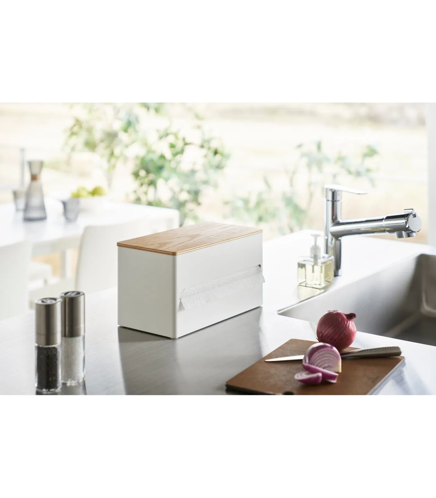 Deze keukenrolhouder van Yamazaki is een stijlvolle toevoeging aan iedere keuken, met zijn stevige stalen behuizing en houten deksel. Er past één keukenrol in en draait soepel mee, waardoor het met één hand af kunt scheuren.