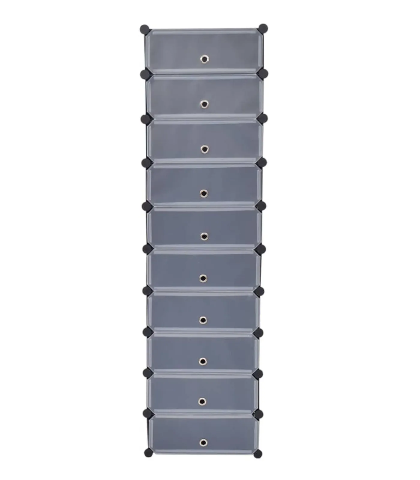 Deze stijlvolle en functionele schoenenkast heeft 10 vakken, ieder met een deurtje, en houdt al je schoenen schoon en georganiseerd.