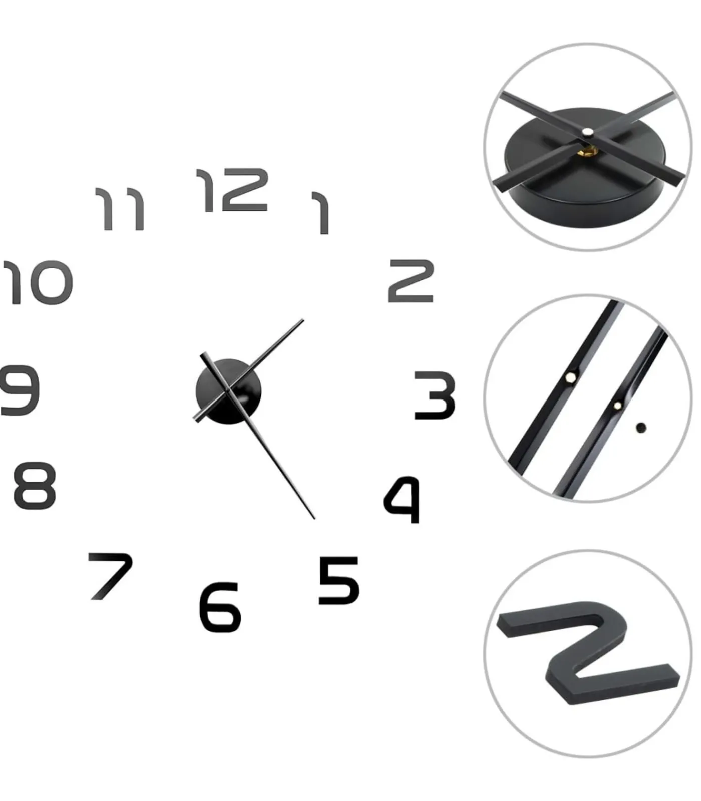 De klok is voorzien van een 3D–effect dat het middelpunt van je interieur wordt. Hij is ook een doe–het–zelf–item, wat betekent dat je de grootte van de klok zelf kan bepalen op basis van jouw behoeften en voorkeur. De stickers hebben een glanzend uiterlijk die bijdragen aan het aantrekkelijke ontwerp van de klok. De klok geeft je interieur een nette en opgeruimde uitstraling. De installatie is eenvoudig.