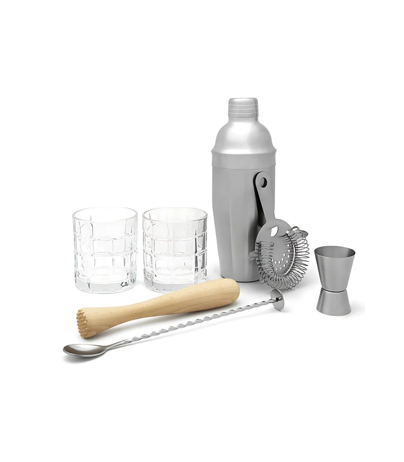 Als je thuis cocktails wilt maken is een goede basisset onmisbaar. Deze 7–delige cocktailset biedt alle tools om thuis lekkere drankjes te maken: een shaker, een barzeef, twee glazen, een muddler, een lepel en een barmaatje. Tijd voor een feetsje!